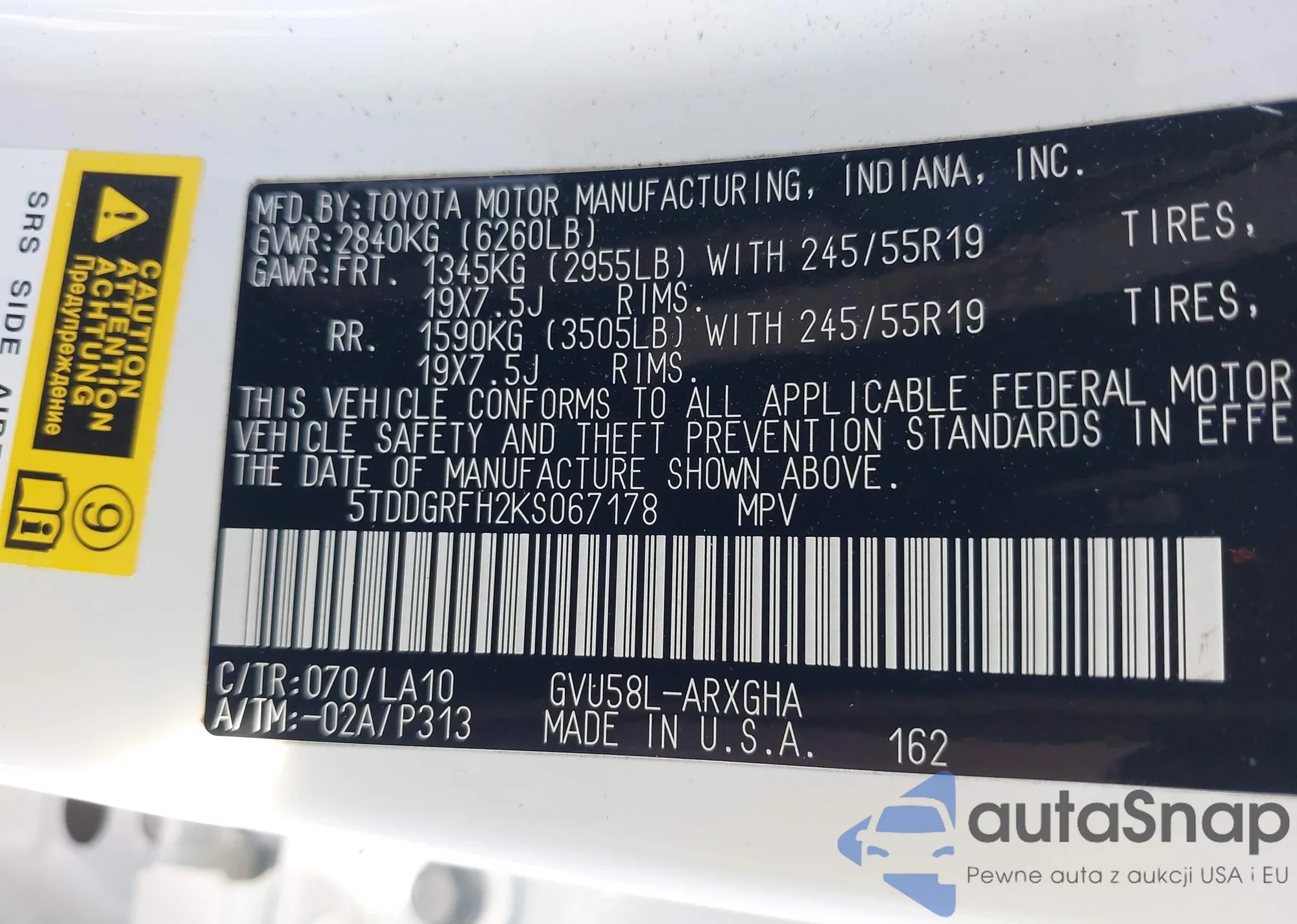 VIN: 5TDDGRFH2KS067178