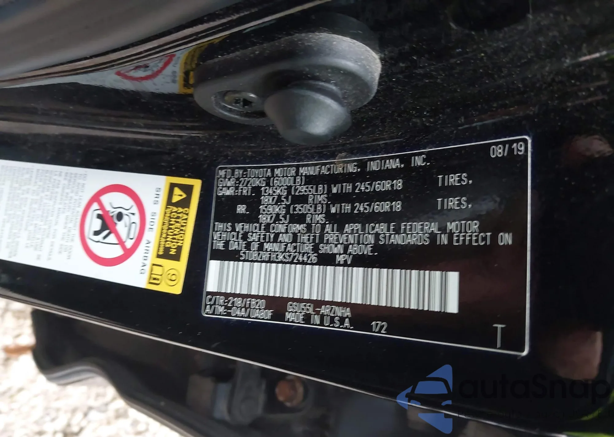 VIN: 5TDBZRFH3KS724426