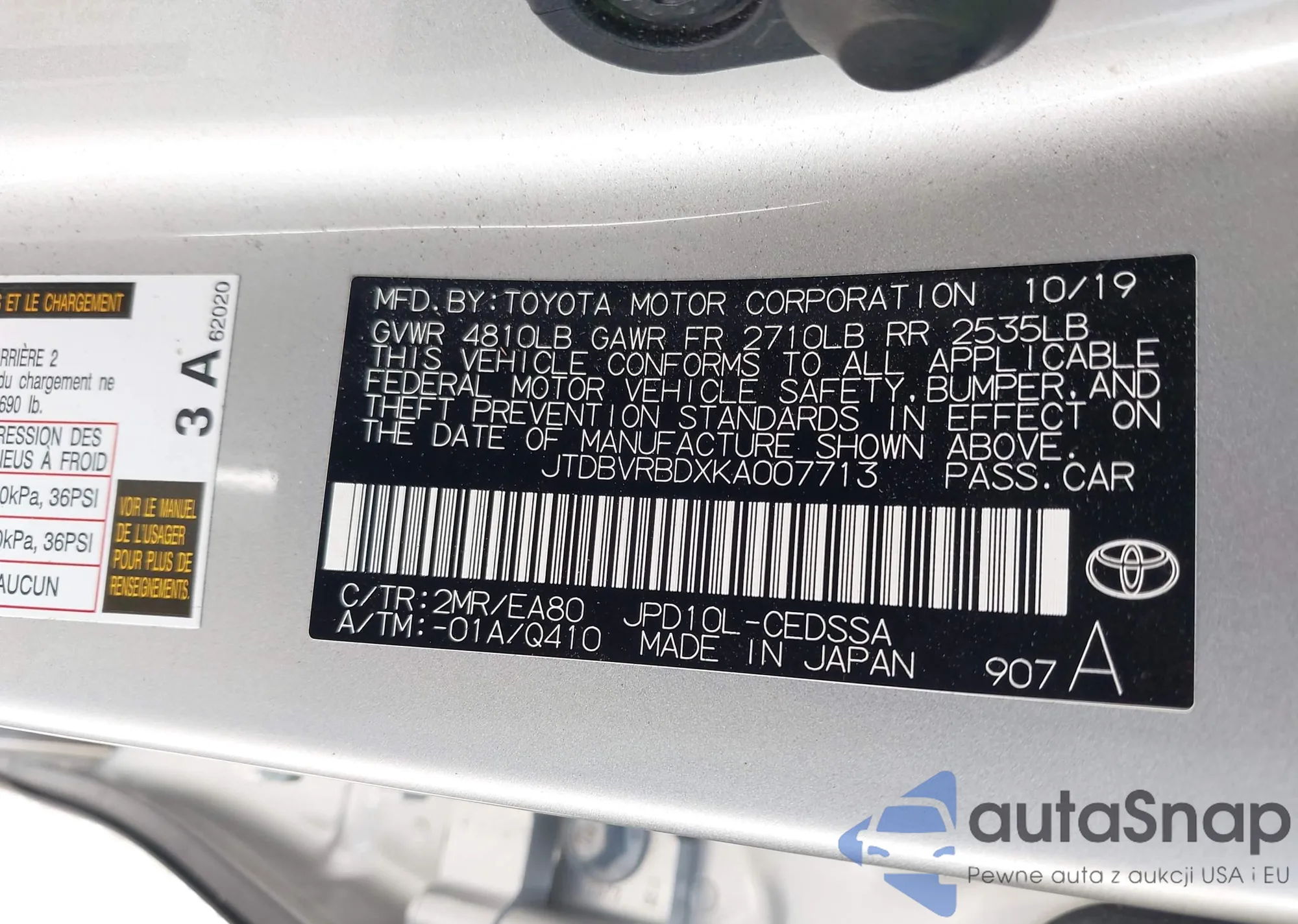 VIN: JTDBVRBDXKA007713