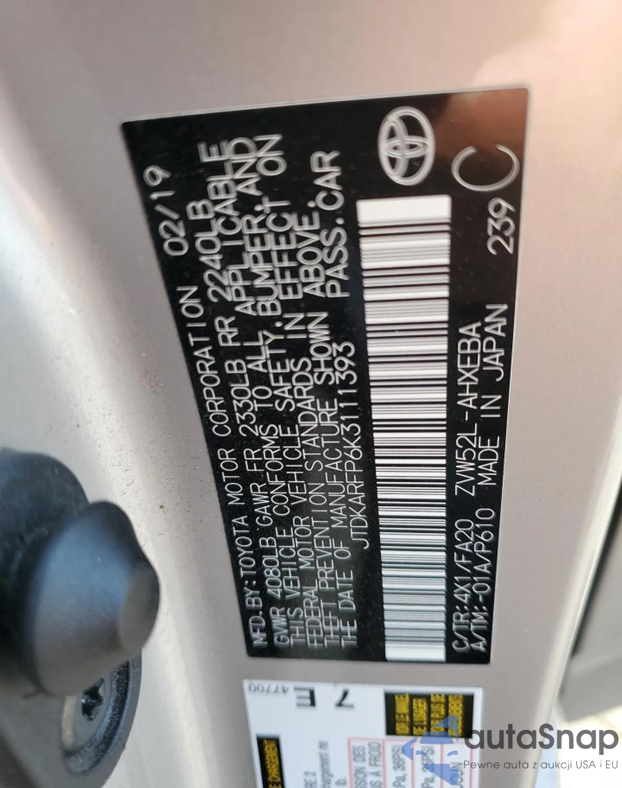 VIN: JTDKARFP6K3111393