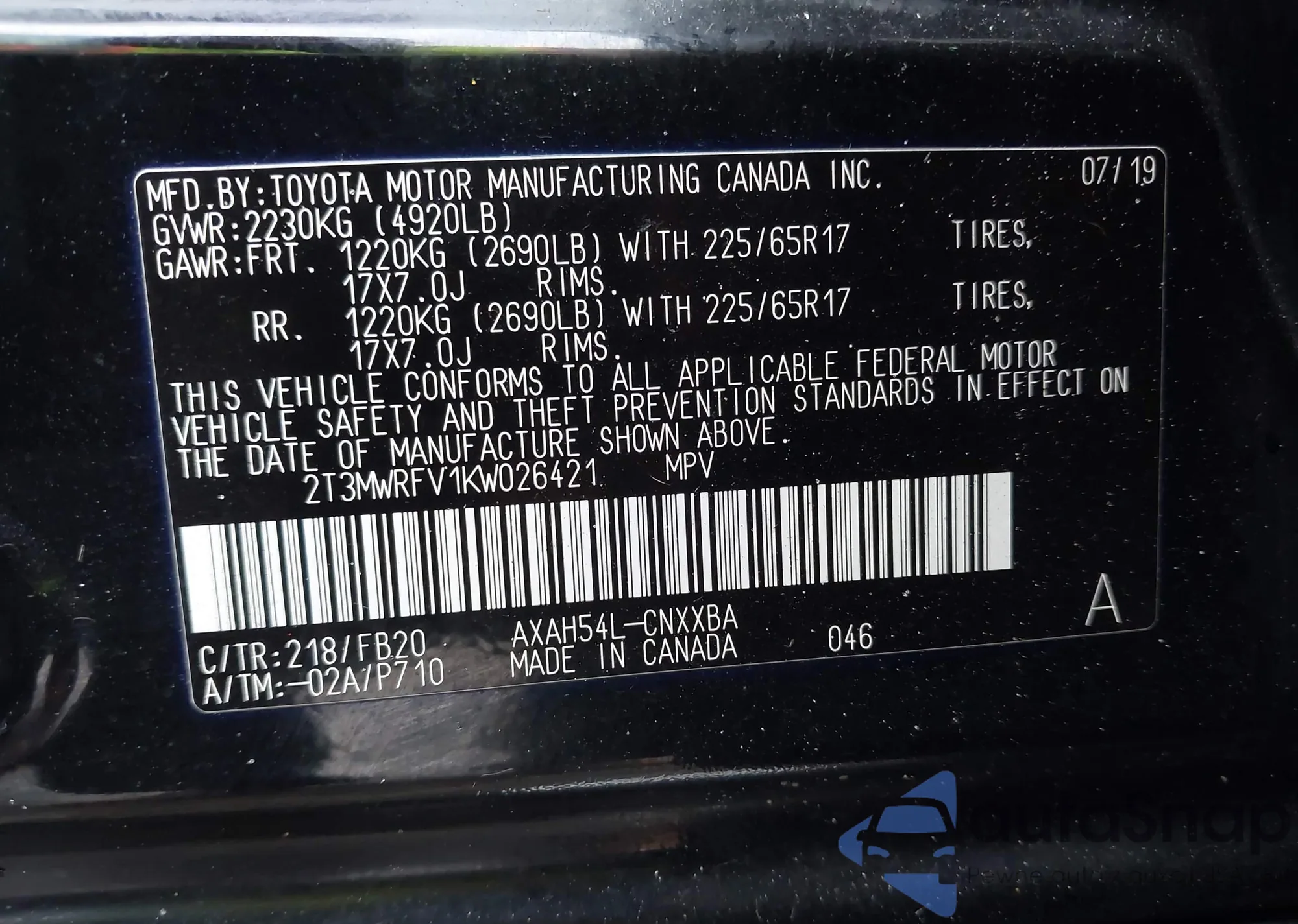 VIN: 2T3MWRFV1KW026421
