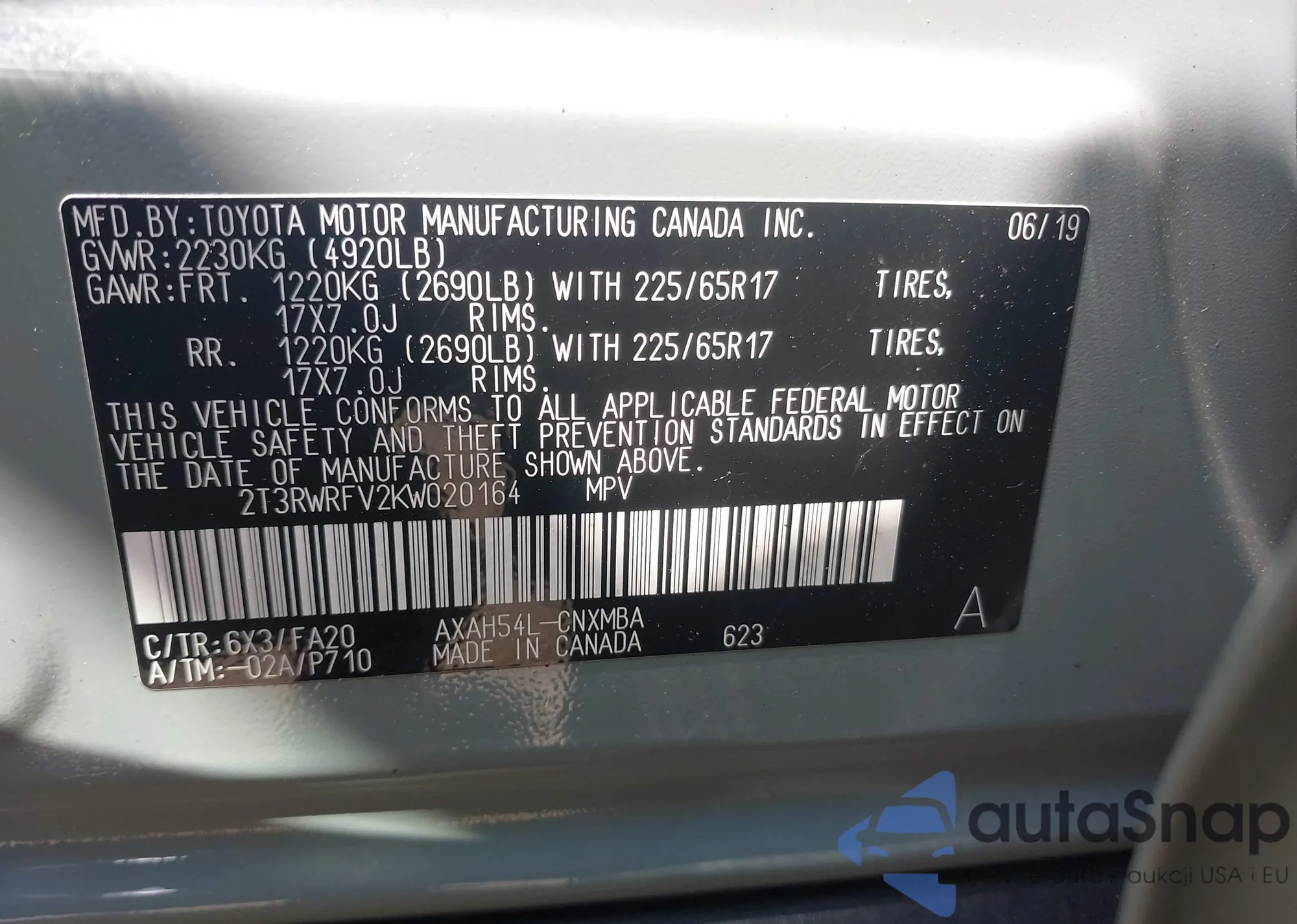 VIN: 2T3RWRFV2KW020164