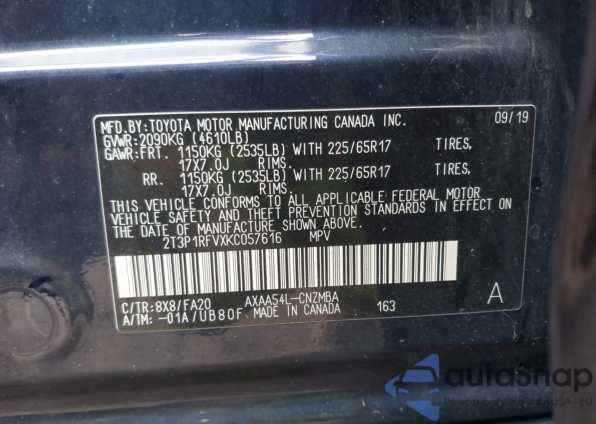 VIN: 2T3P1RFVXKC057616