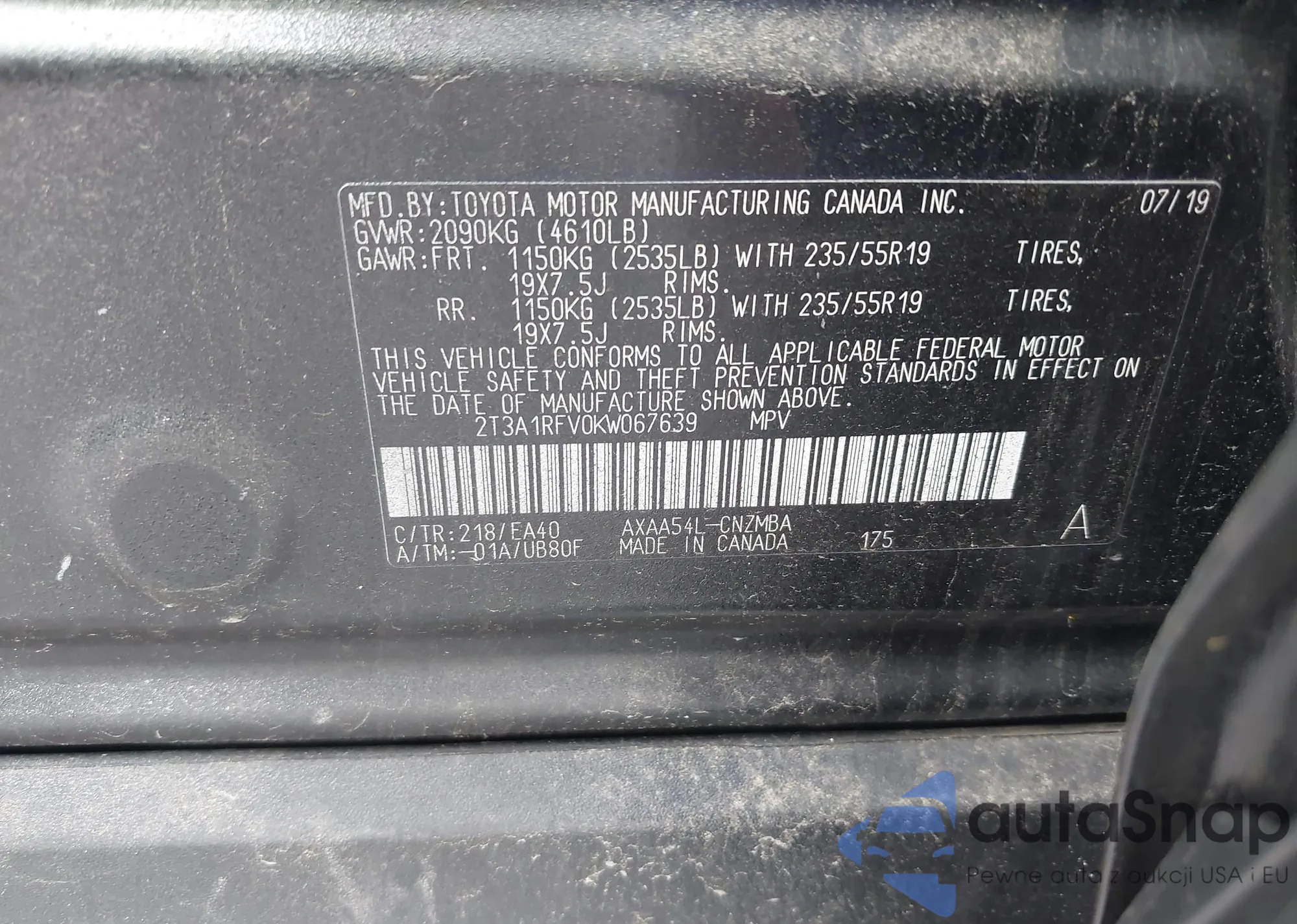 VIN: 2T3A1RFV0KW067639