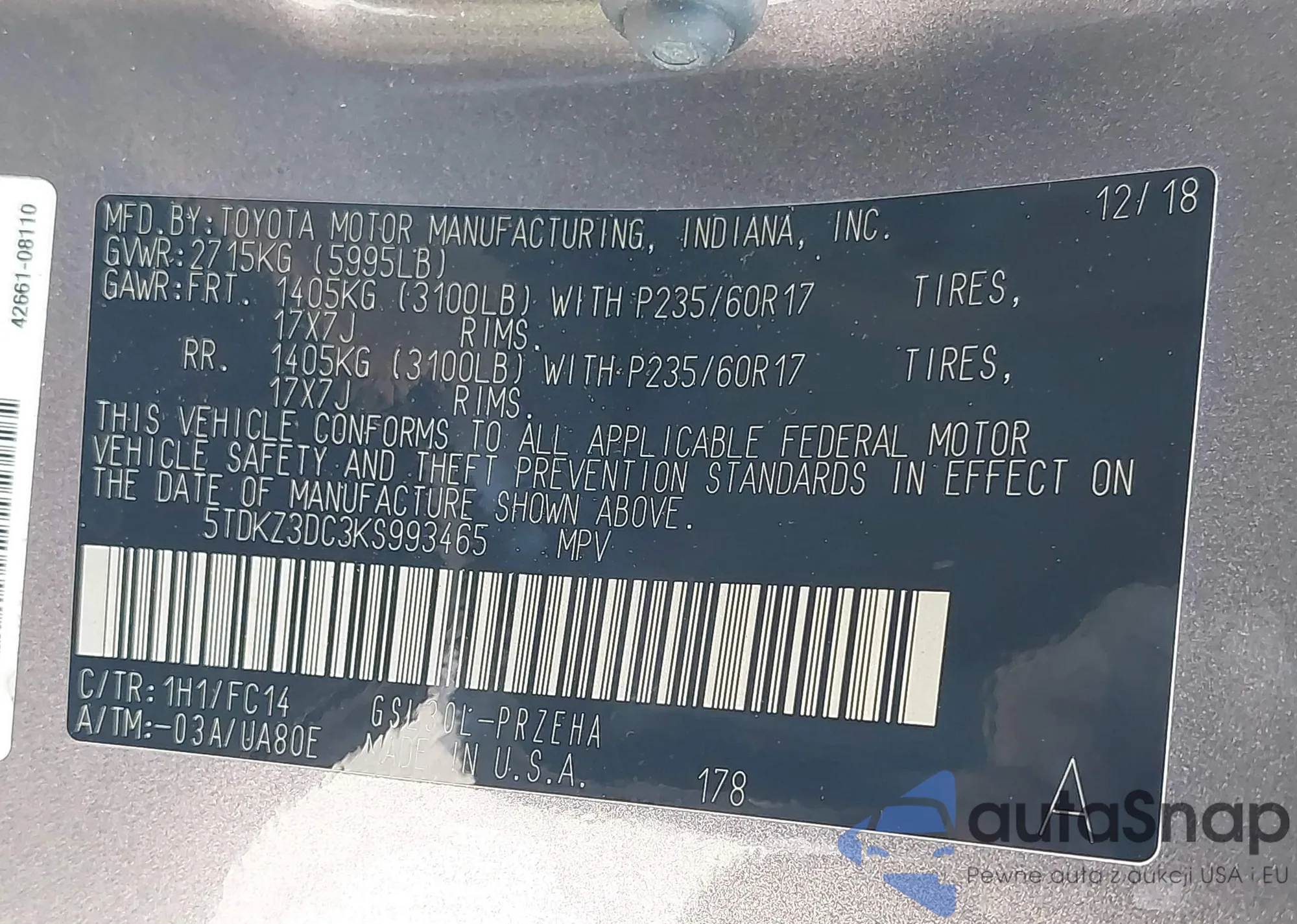 VIN: 5TDKZ3DC3KS993465