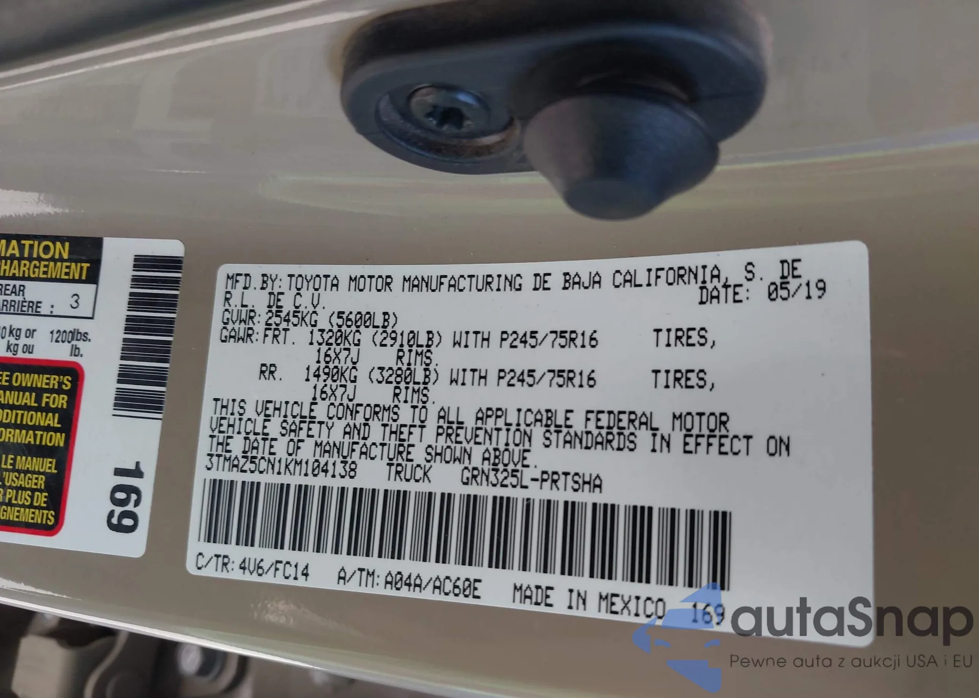 VIN: 3TMAZ5CN1KM104138