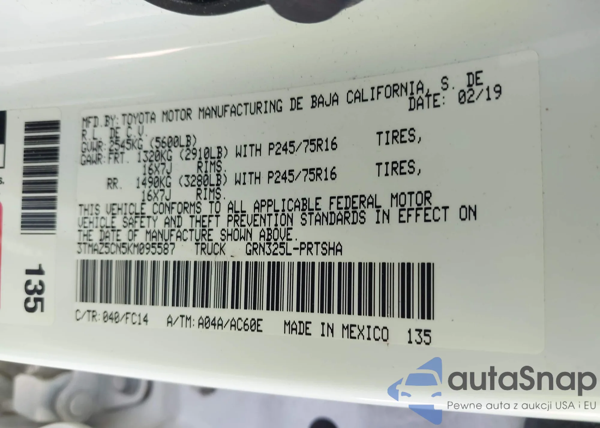 VIN: 3TMAZ5CN5KM095587