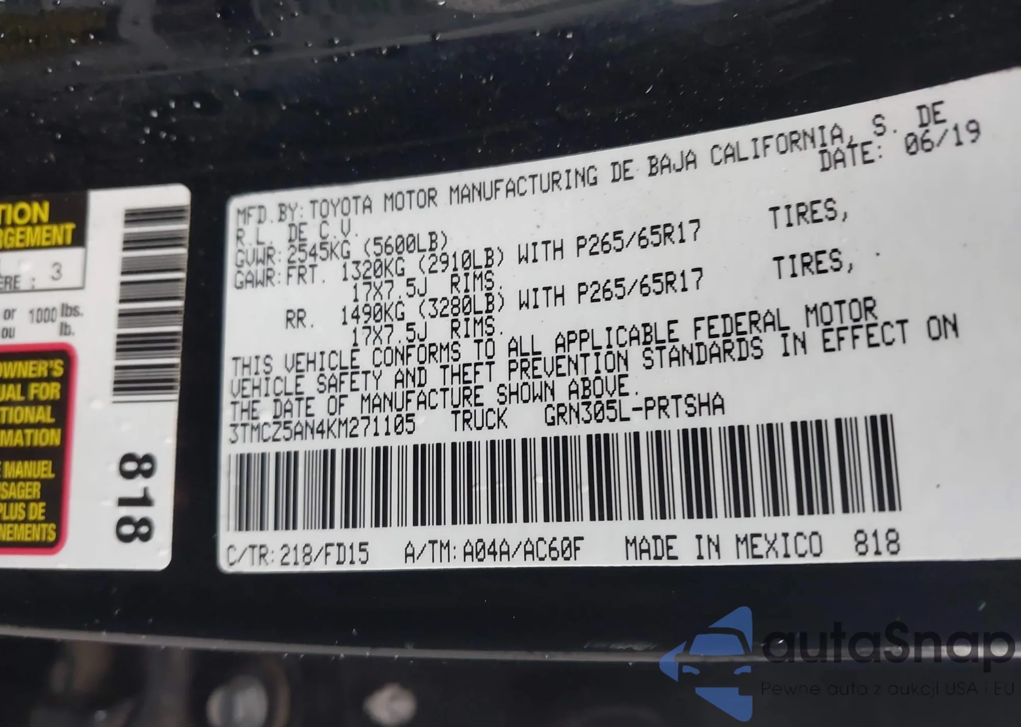 VIN: 3TMCZ5AN4KM271105
