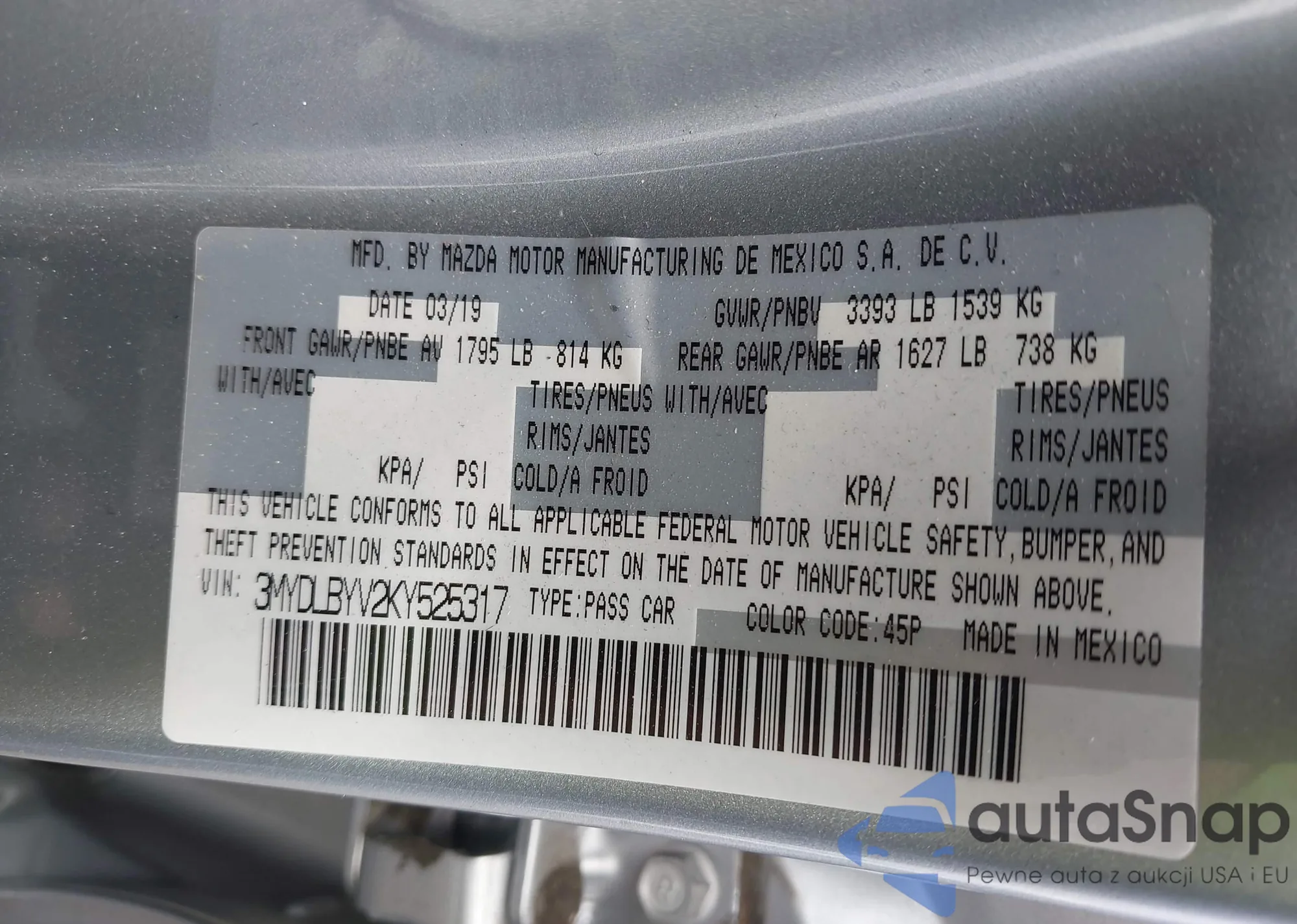 VIN: 3MYDLBYV2KY525317