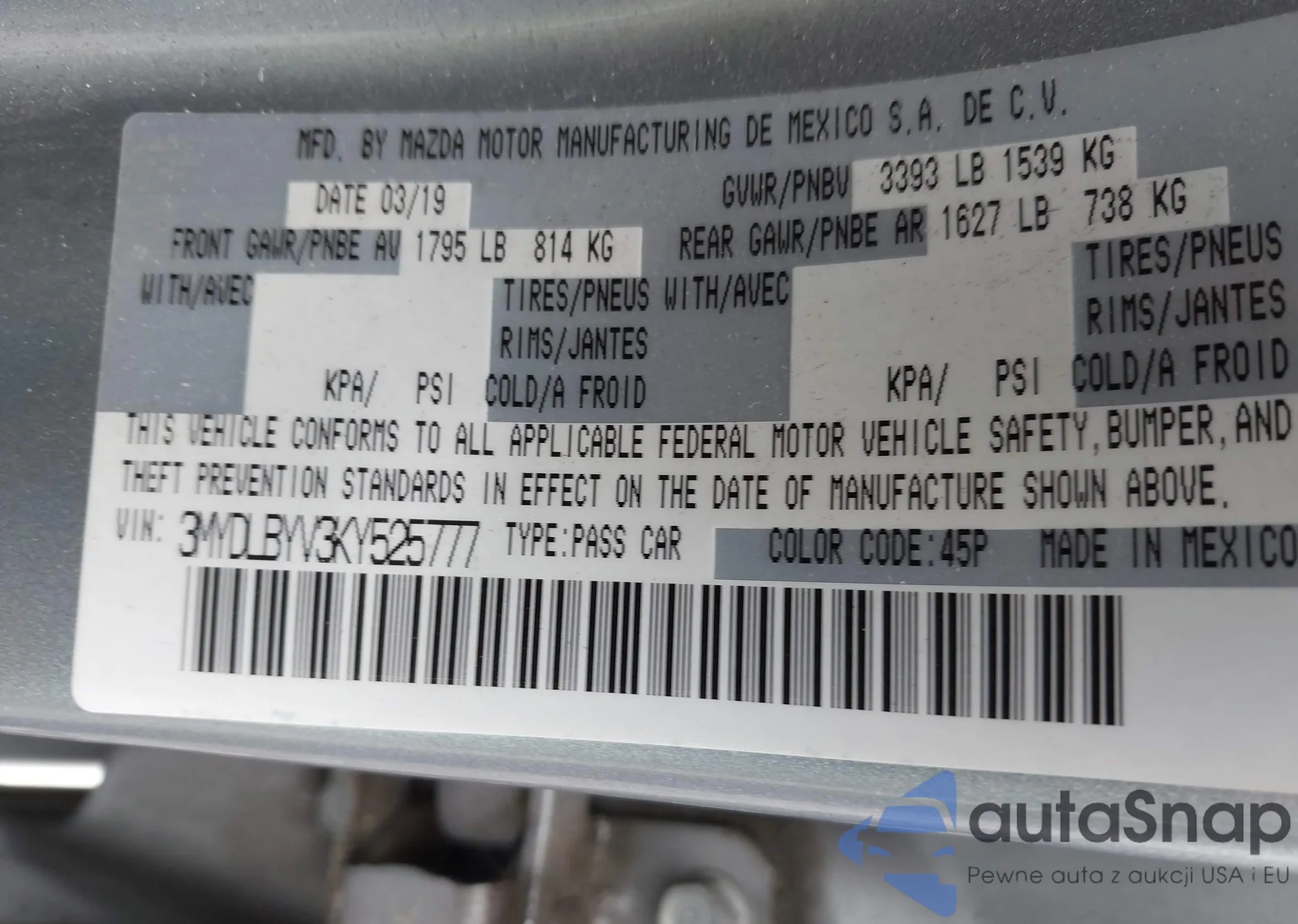 VIN: 3MYDLBYV3KY525777