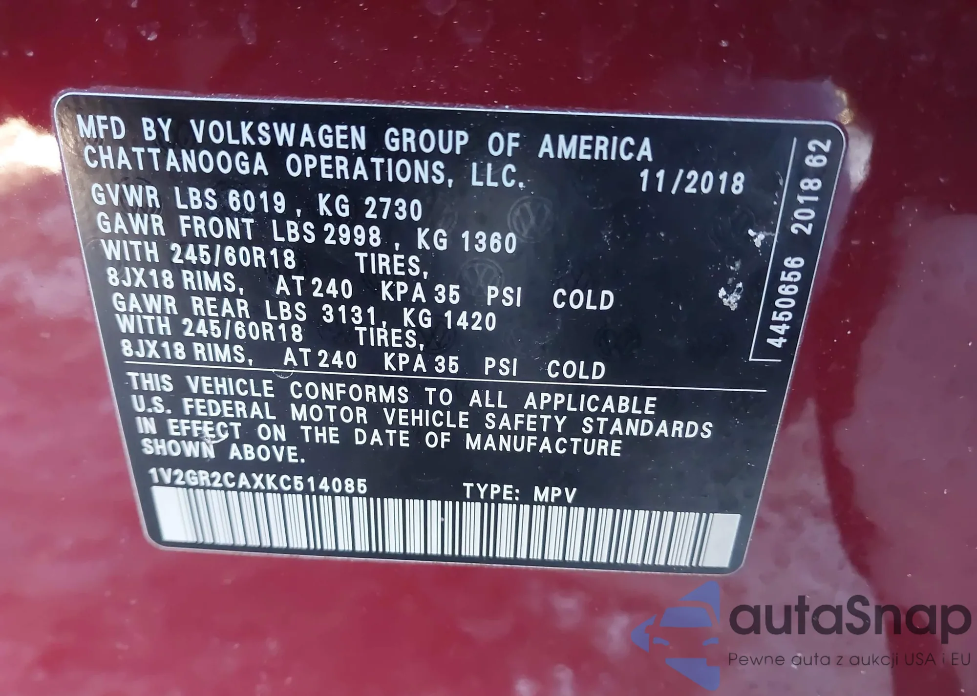The car Volkswagen Atlas 2019 (VIN 1V2GR2CAXKC514085) has not been auctioned before. The documents are clean, and the mileage matches or is below the market average. Sold by an insurance company – we recommend purchase. Delivery to the port will take approx. 6–8 weeks.