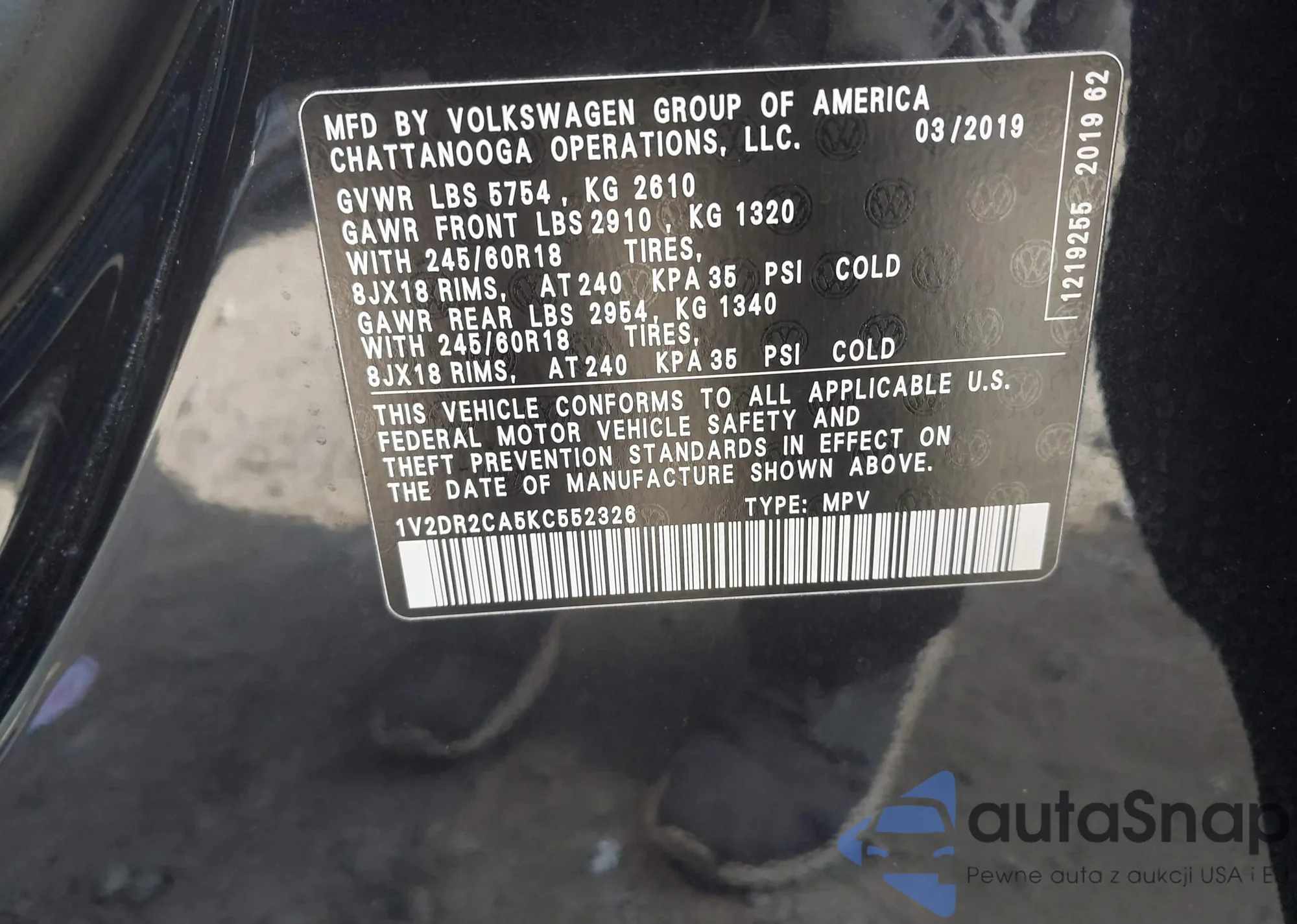 • VIN: 1V2DR2CA5KC552326
