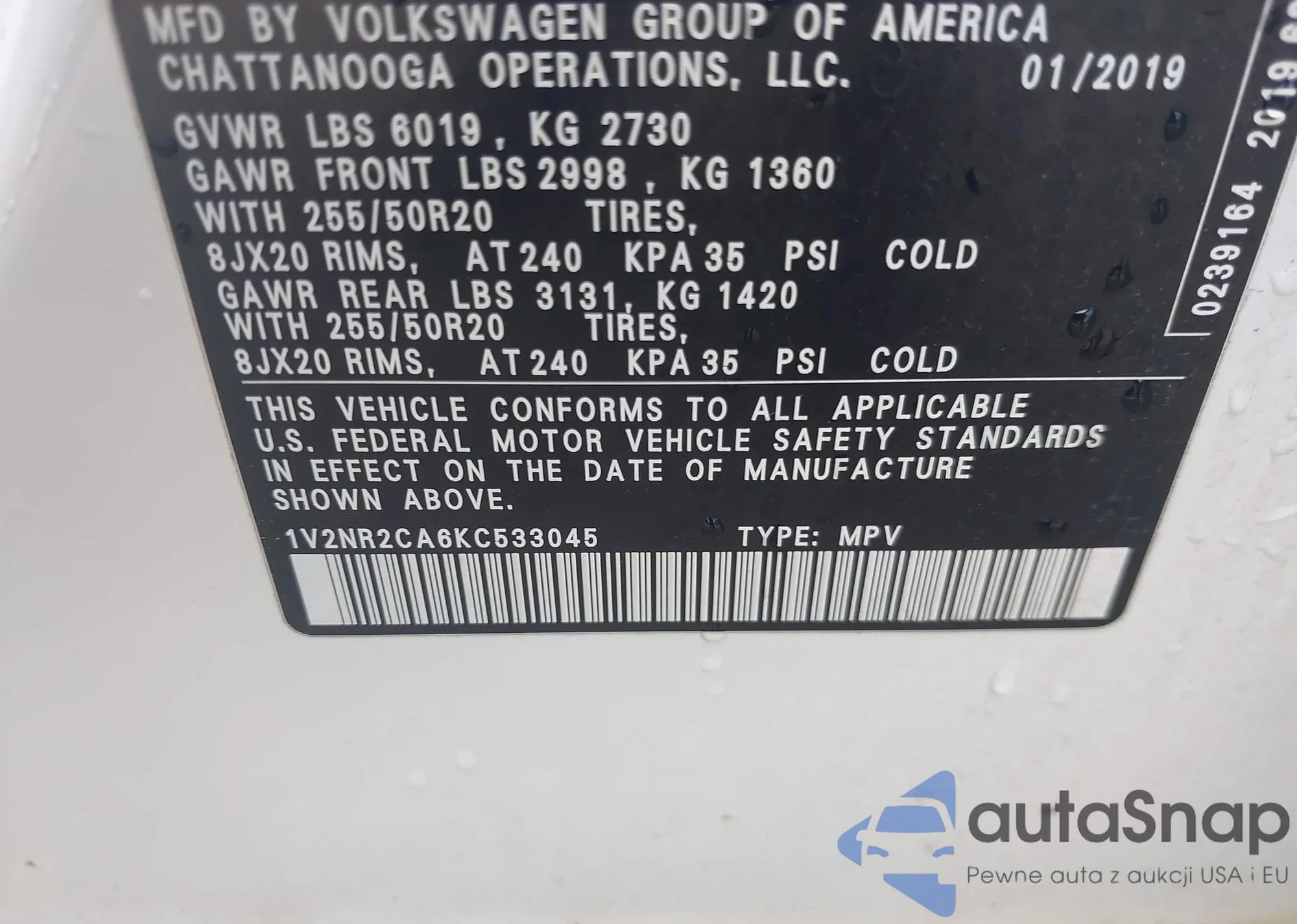 VIN: 1V2NR2CA6KC533045