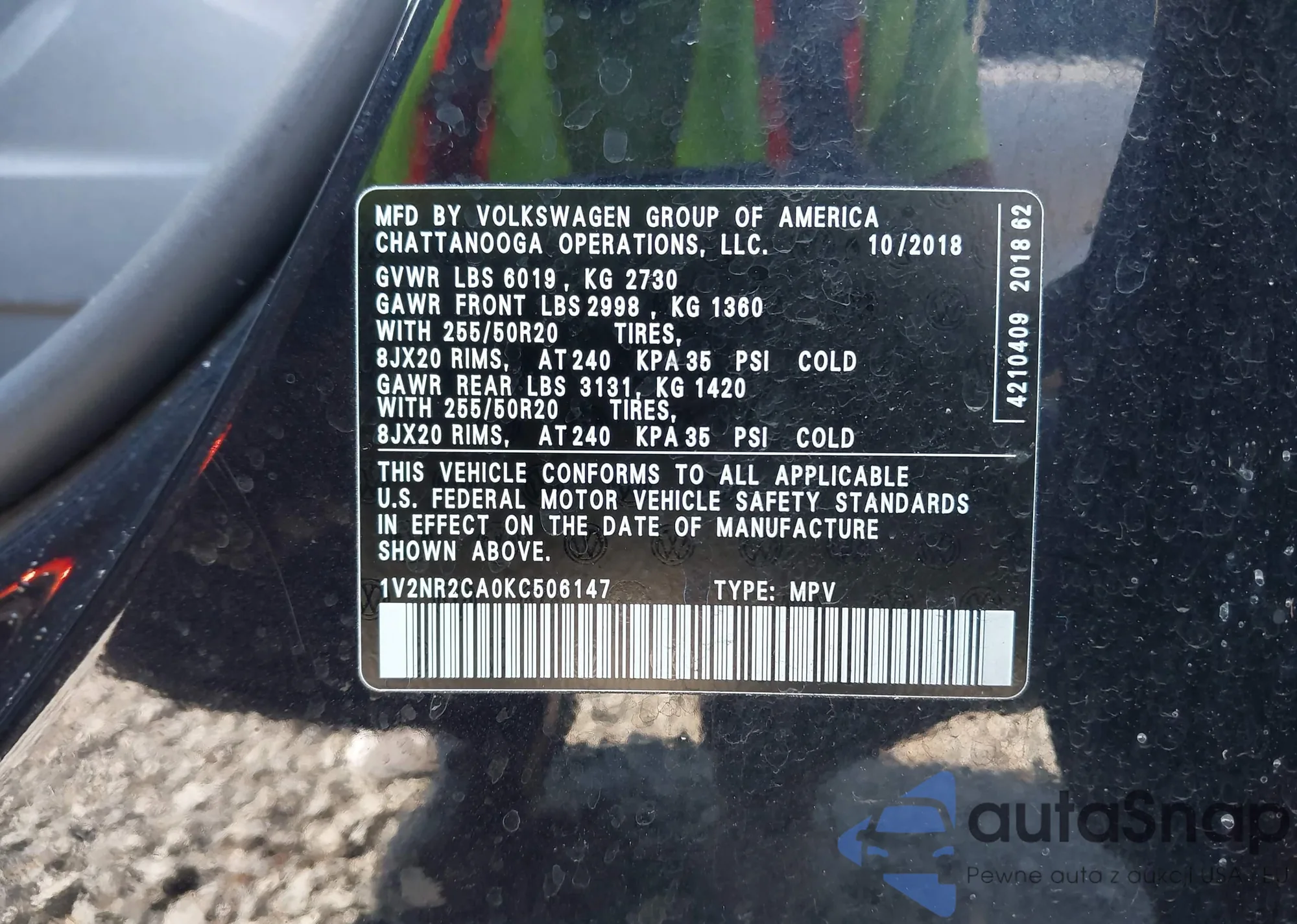 • VIN: 1V2NR2CA0KC506147