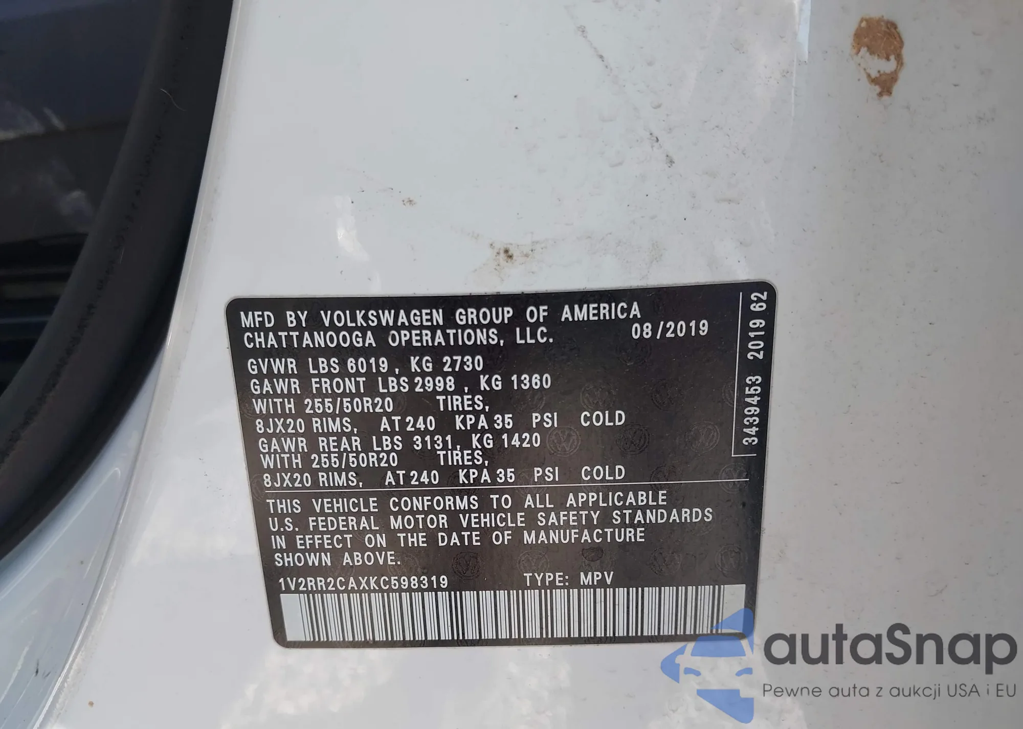 VIN: 1V2RR2CAXKC598319