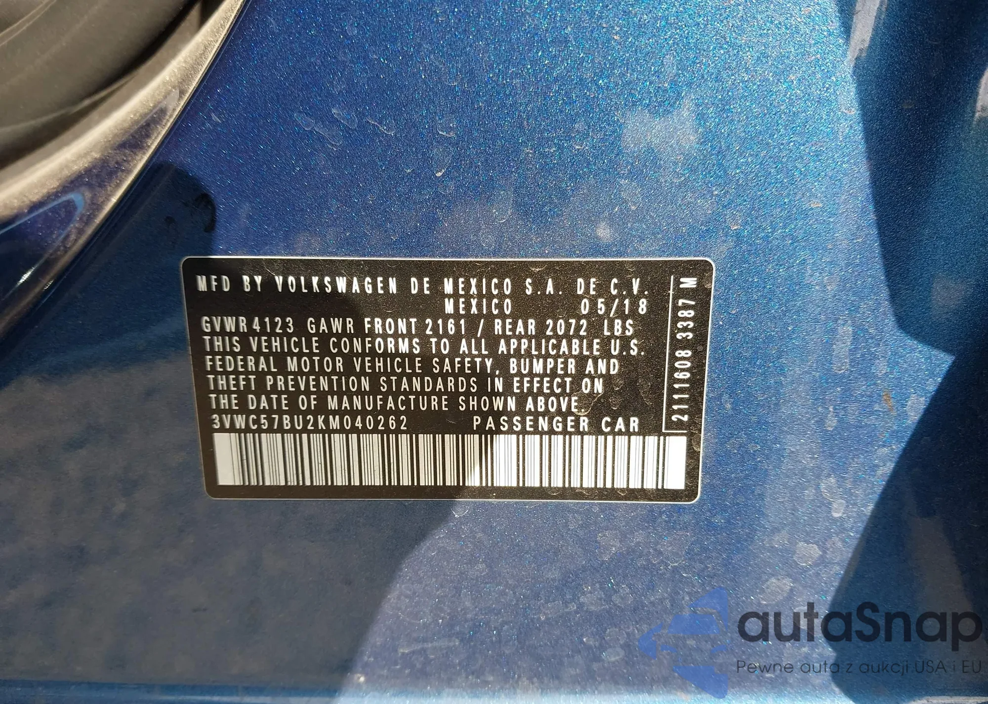 VIN: 3VWC57BU2KM040262