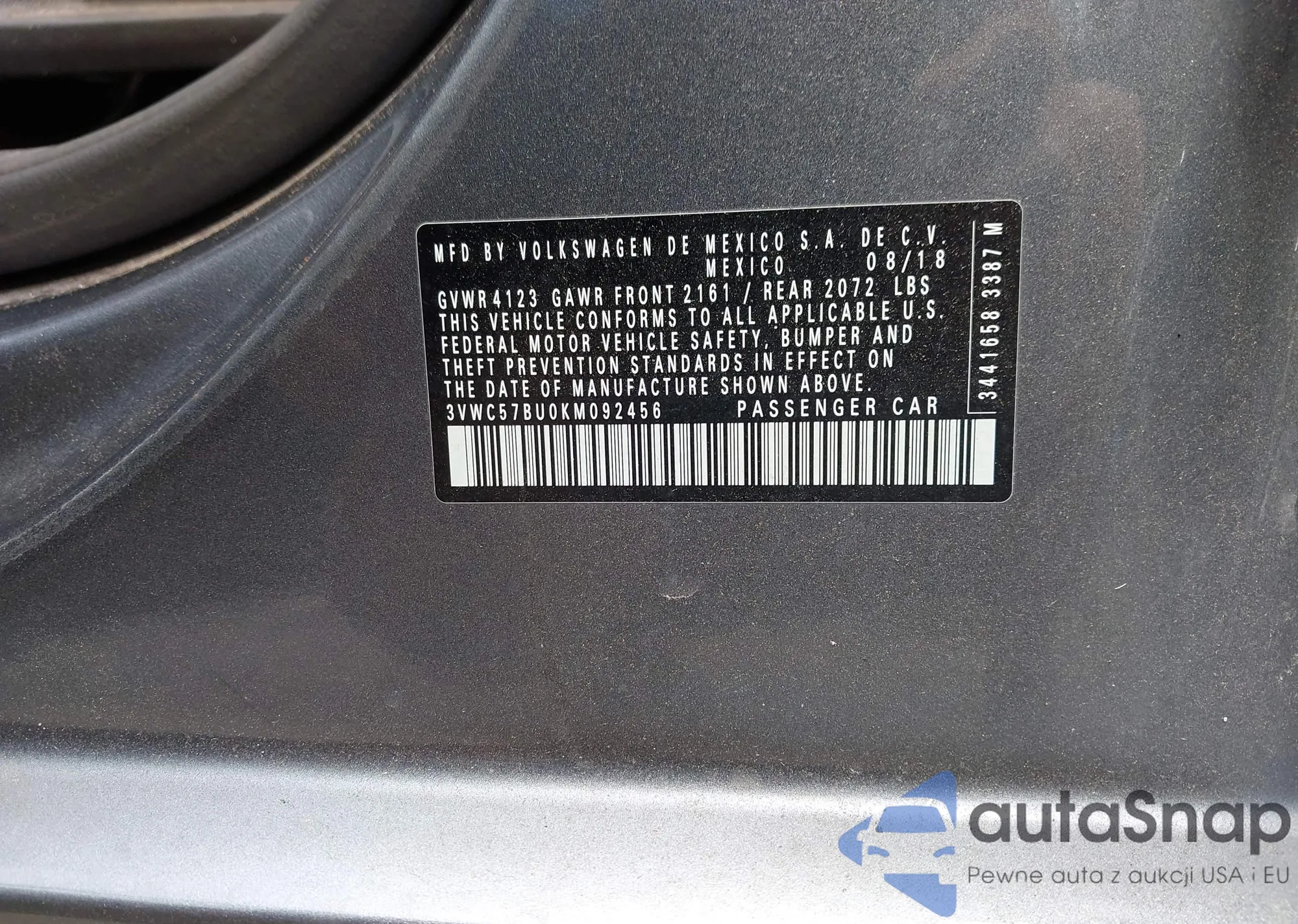 VIN: 3VWC57BU0KM092456