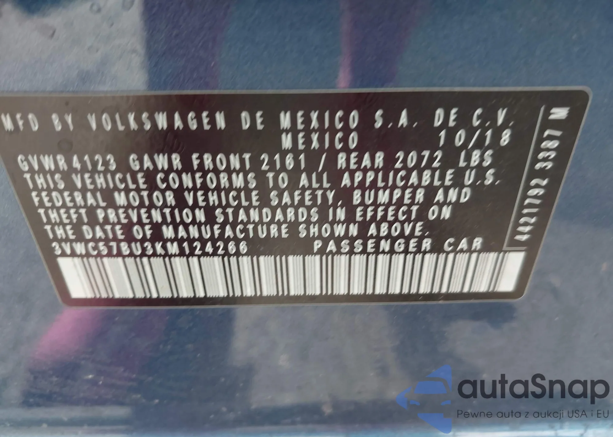 VIN: 3VWC57BU3KM124266