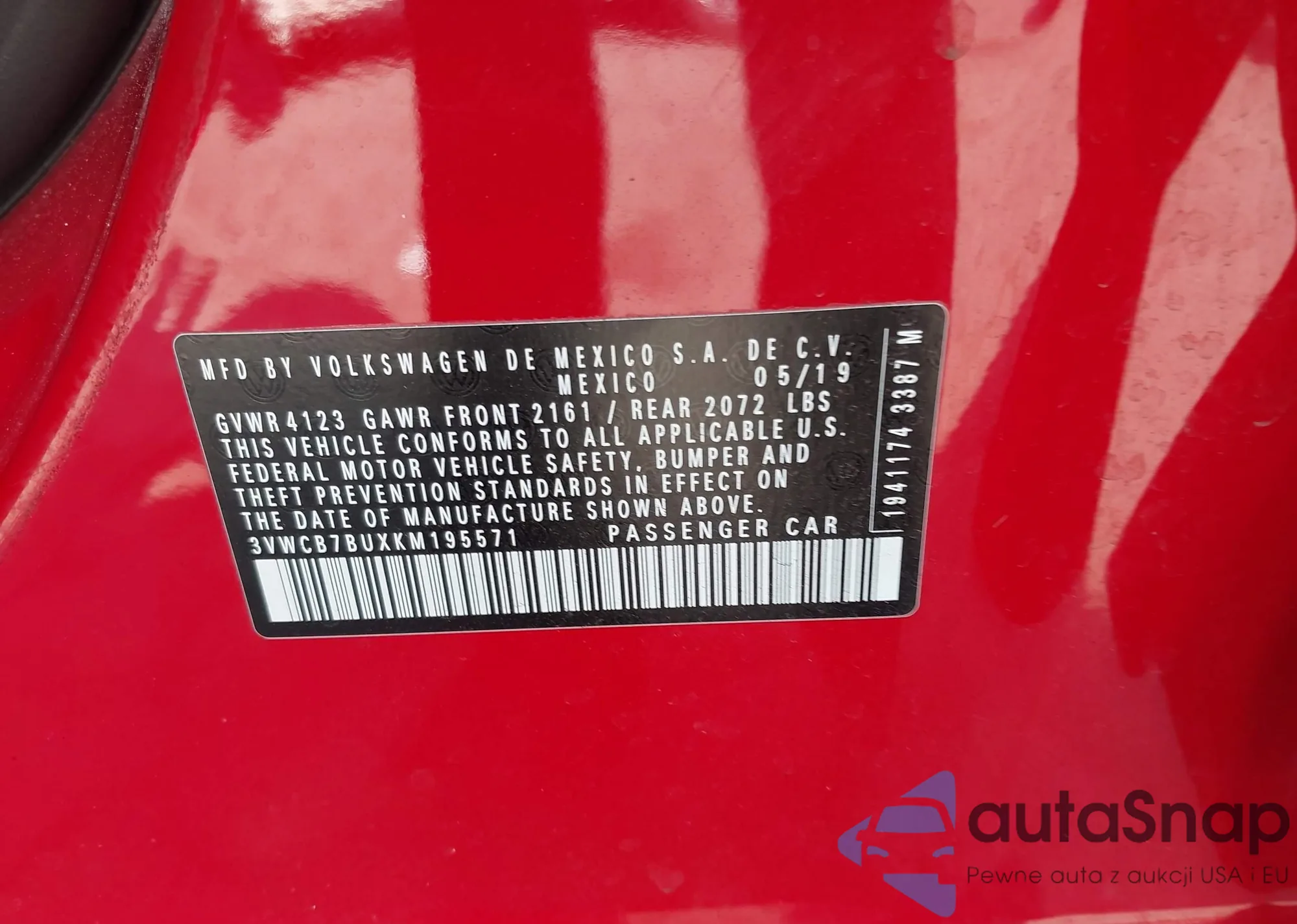 VIN: 3VWCB7BUXKM195571