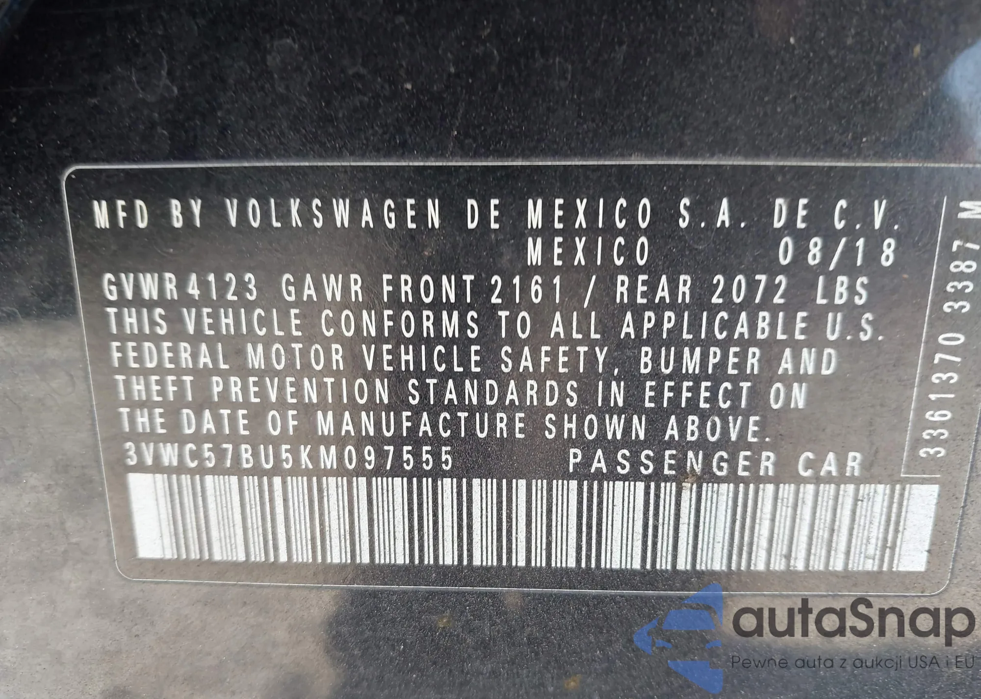 VIN: 3VWC57BU5KM097555