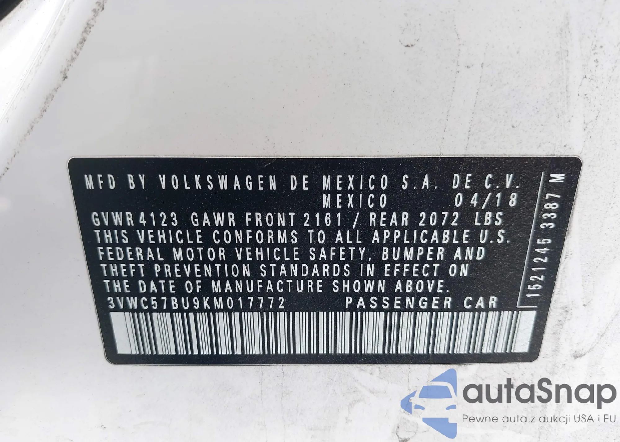 VIN: 3VWC57BU9KM017772