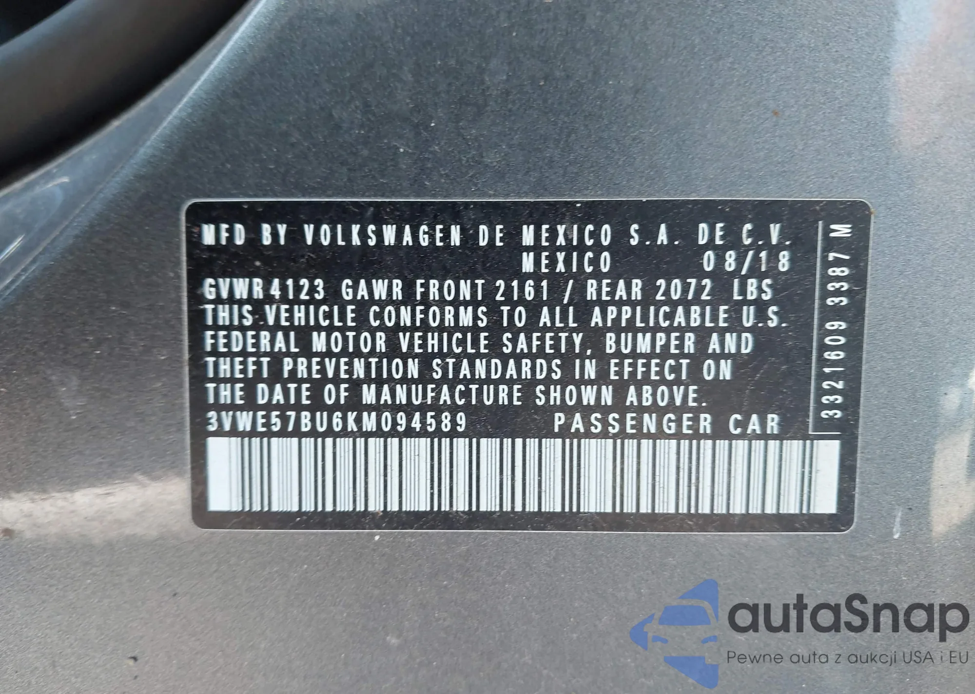 VIN: 3VWE57BU6KM094589
