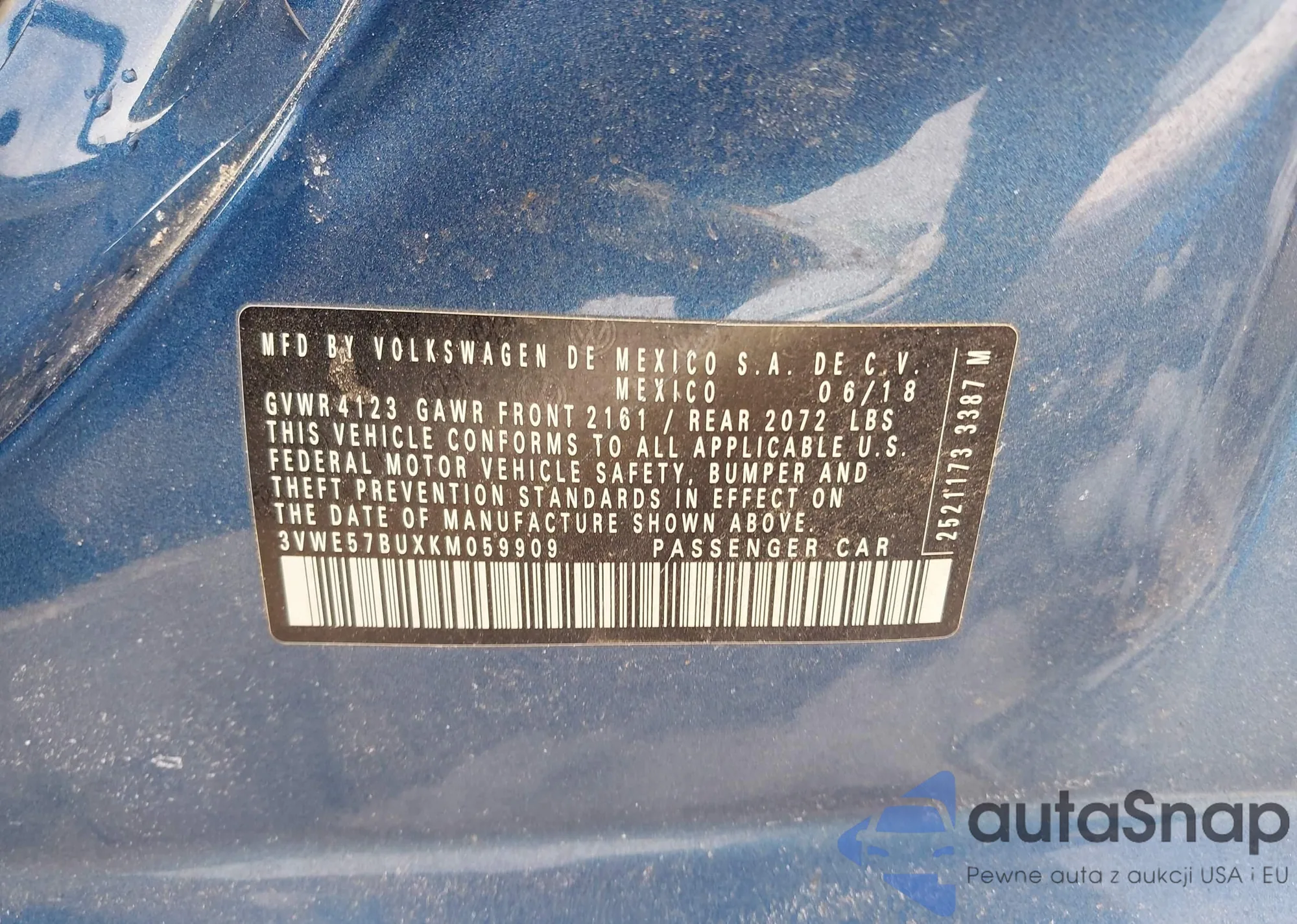 The car Volkswagen Jetta 2019 (VIN 3VWE57BUXKM059909) has not been auctioned before. The documents are clean, and the mileage matches or is below the market average. Sold by an insurance company – we recommend purchase. Delivery to the port will take approx. 6–8 weeks.