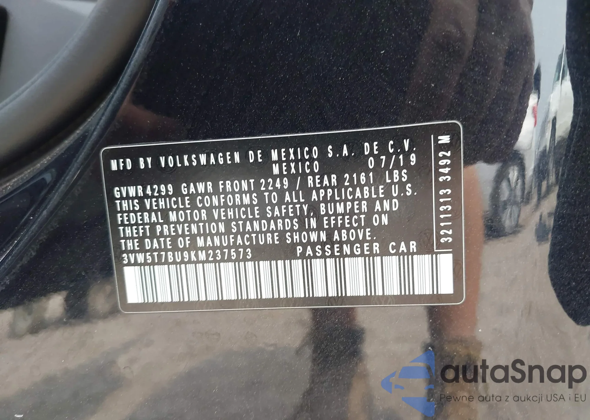 VIN: 3VW5T7BU9KM237573