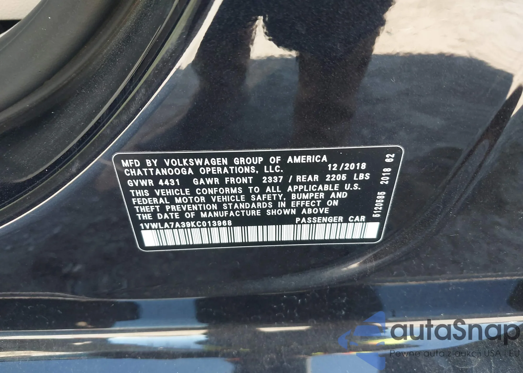 VIN: 1VWLA7A39KC013968