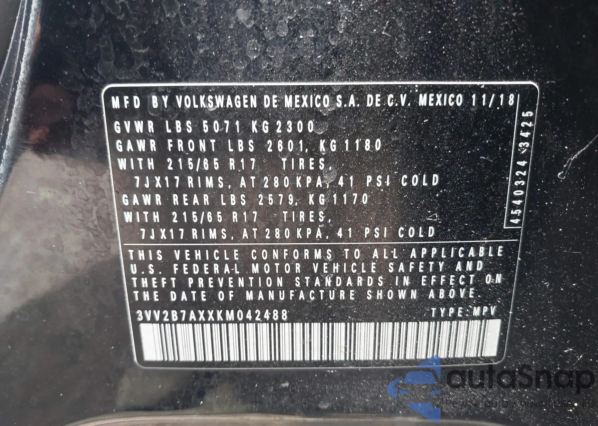 The car Volkswagen Tiguan 2019 (VIN 3VV2B7AXXKM042488) has not been auctioned before. The documents are clean, and the mileage matches or is below the market average. Sold by an insurance company – we recommend purchase. Delivery to the port will take approx. 6–8 weeks.