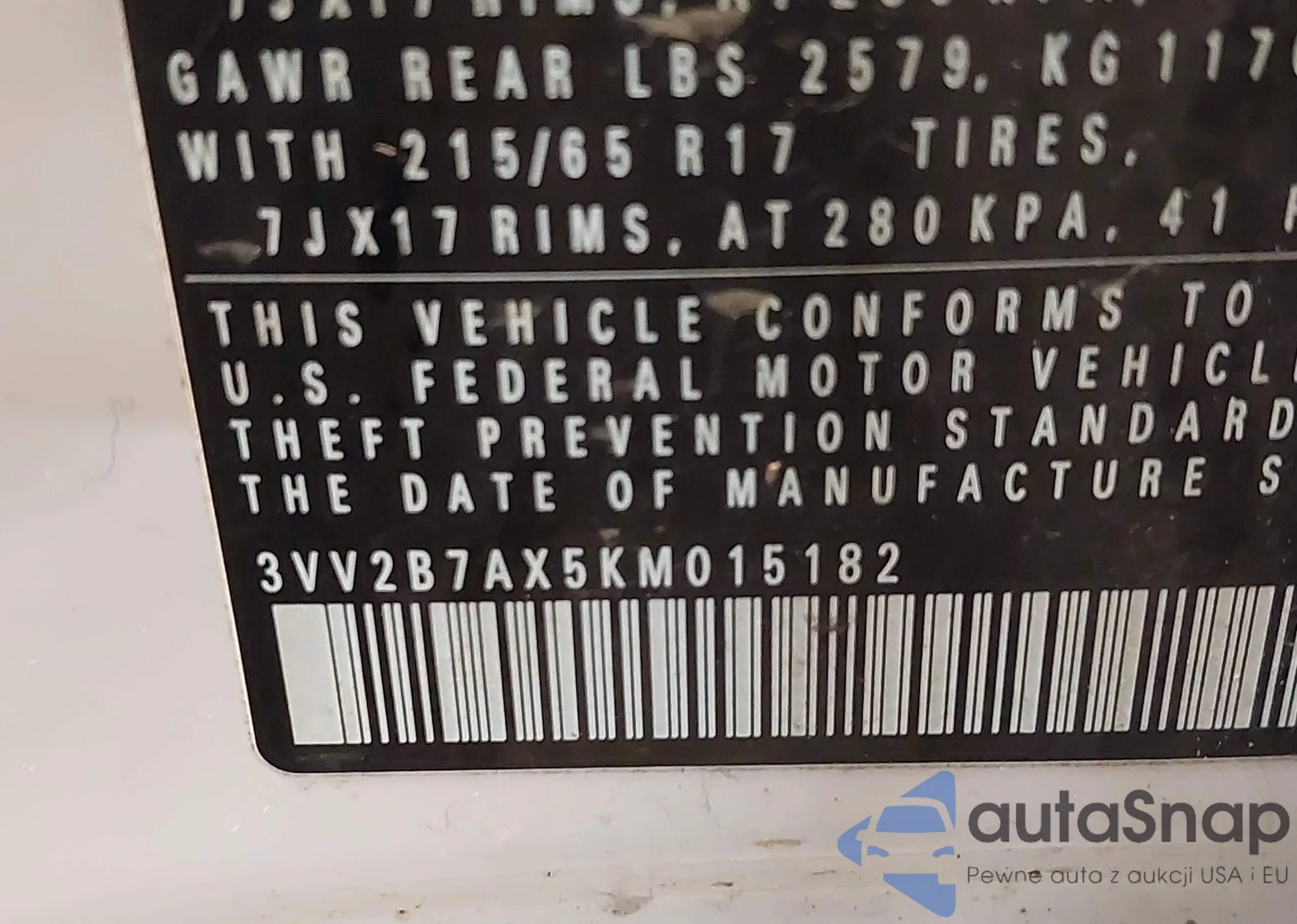 3VV2B7AX5KM015182 IAAI