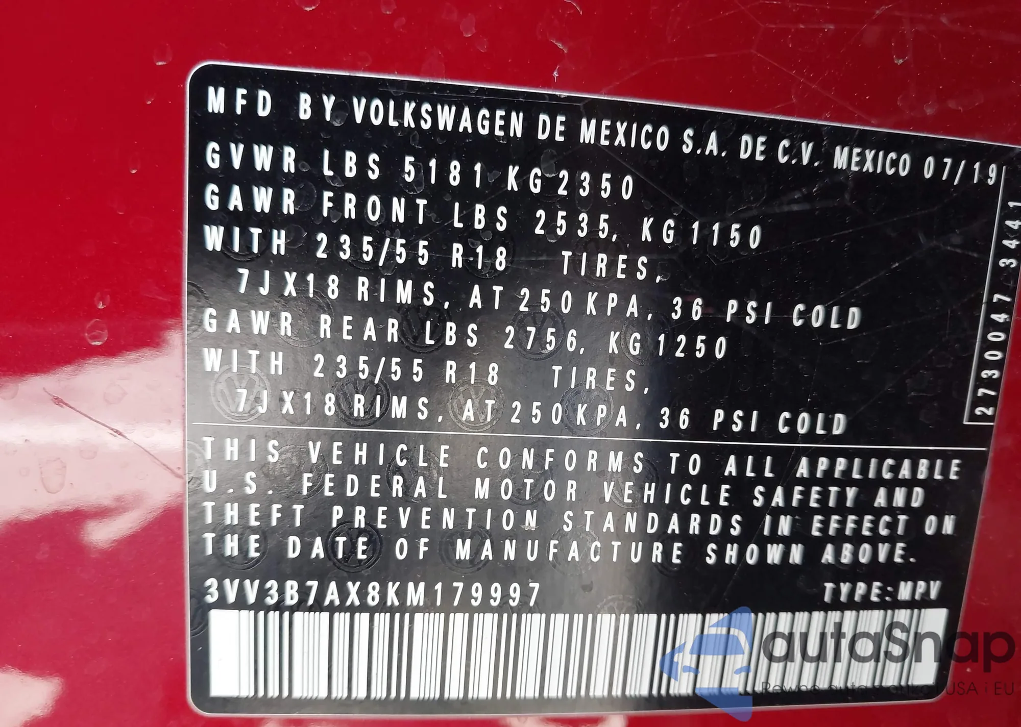 VIN: 3VV3B7AX8KM179997