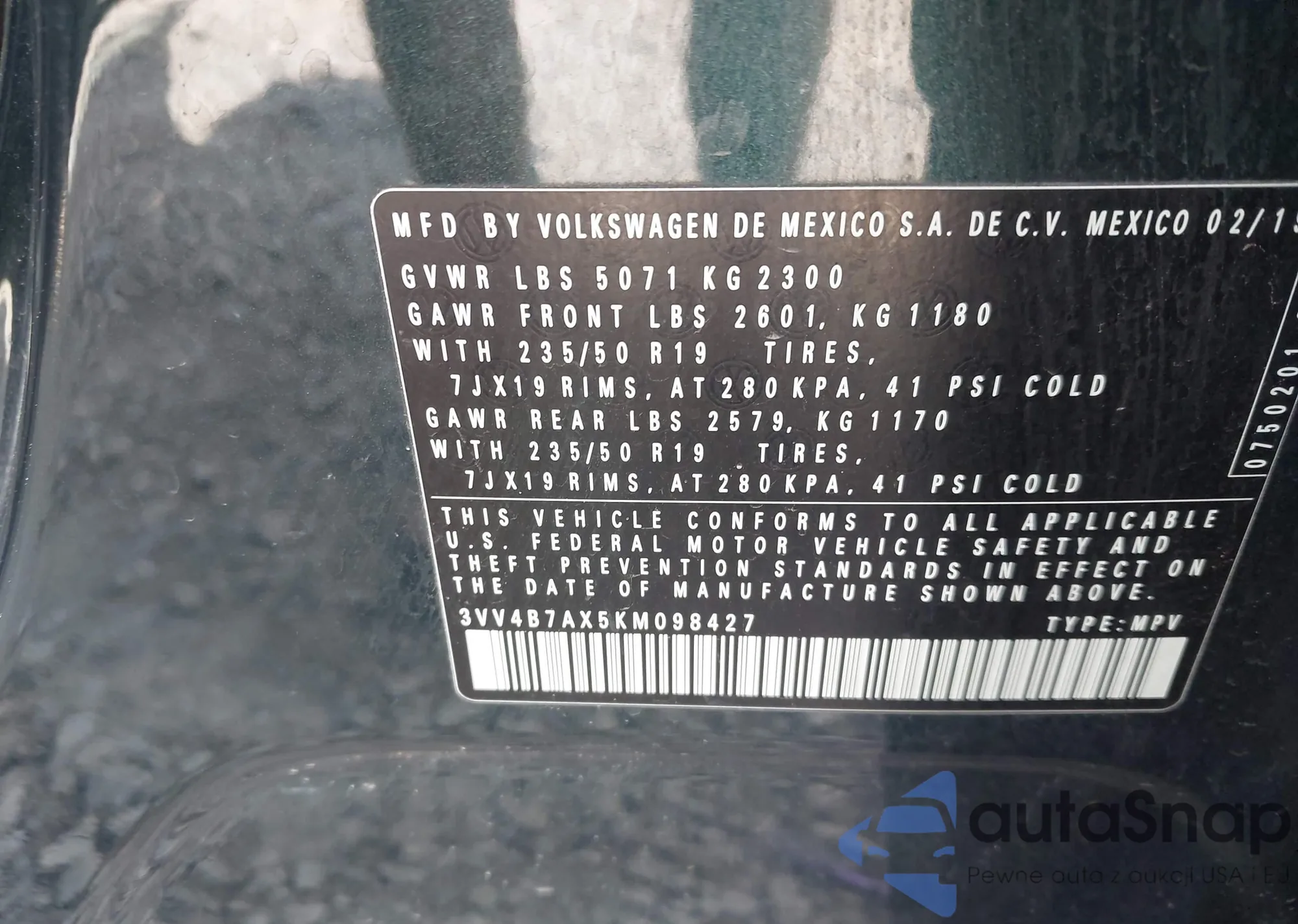 VIN: 3VV4B7AX5KM098427