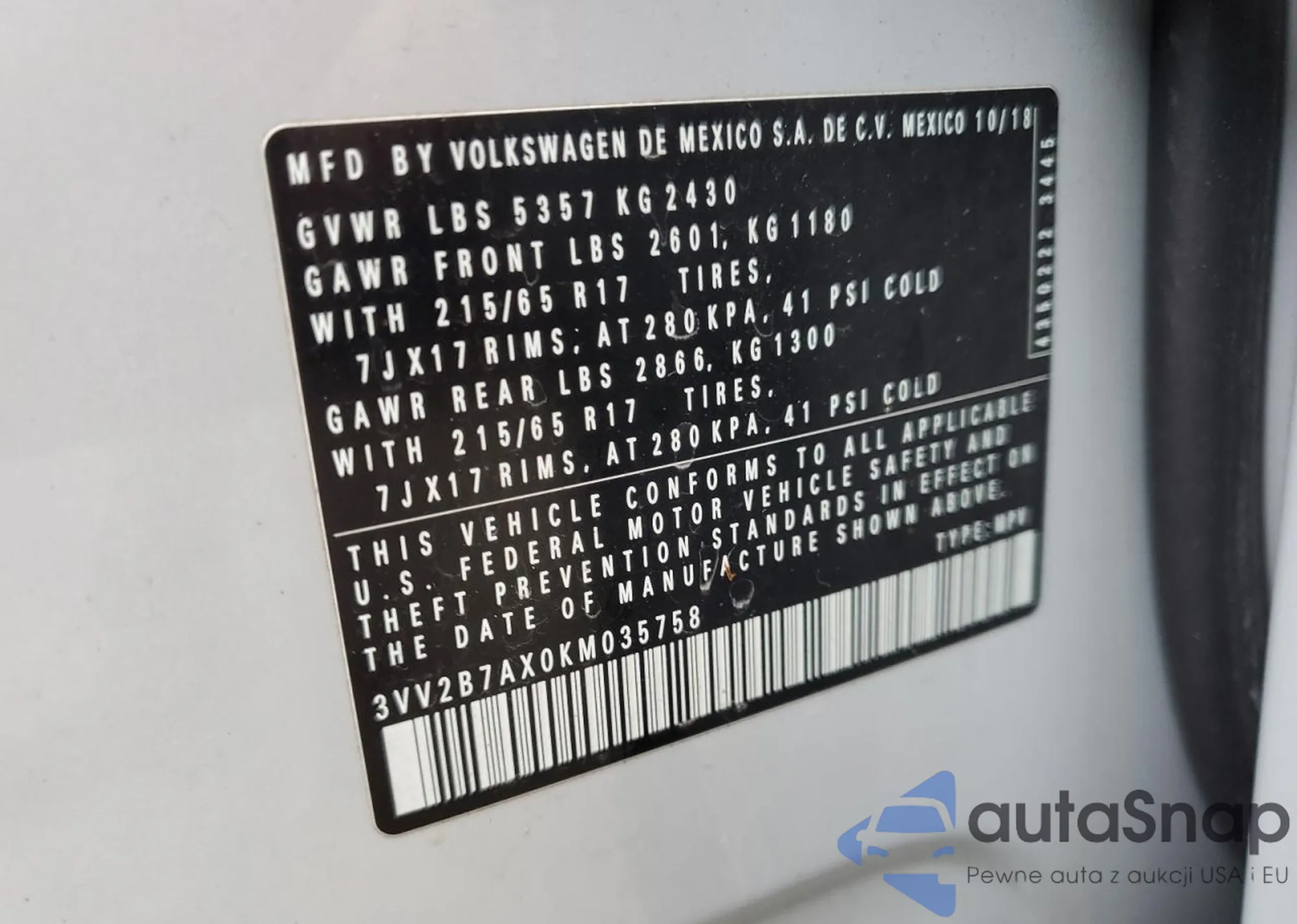 VIN: 3VV2B7AX0KM035758