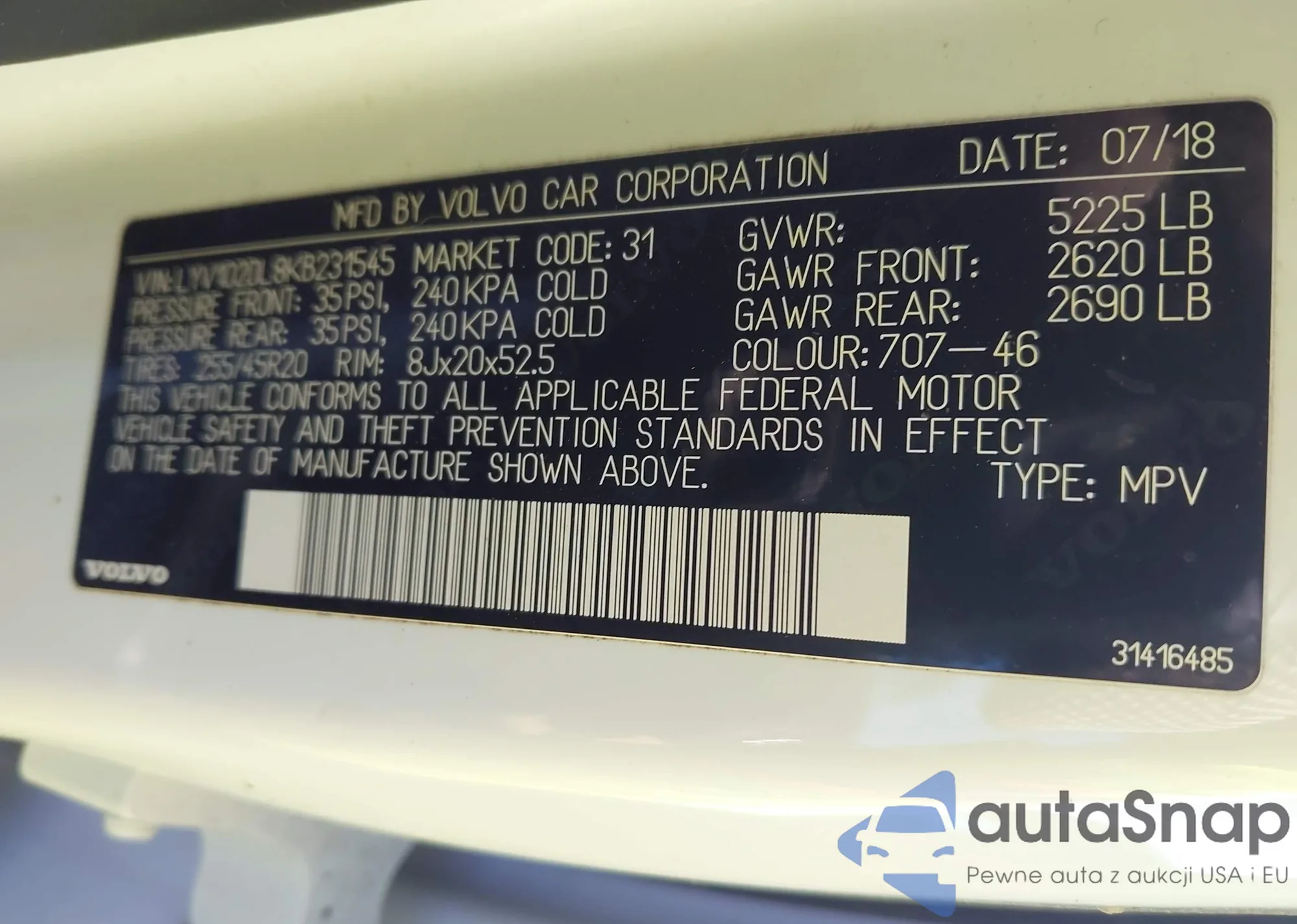 VIN: LYV102DL8KB231545