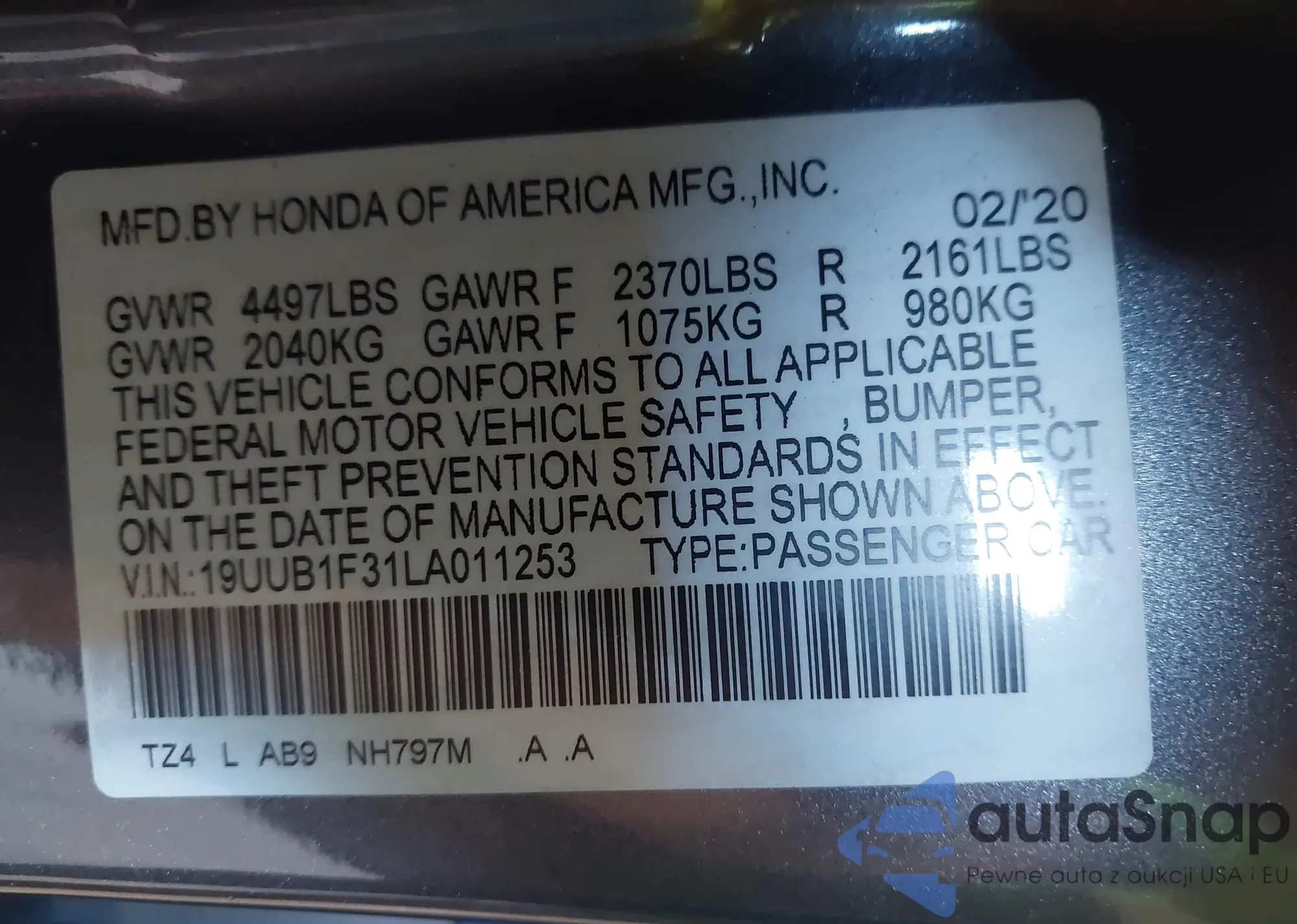 VIN: 19UUB1F31LA011253