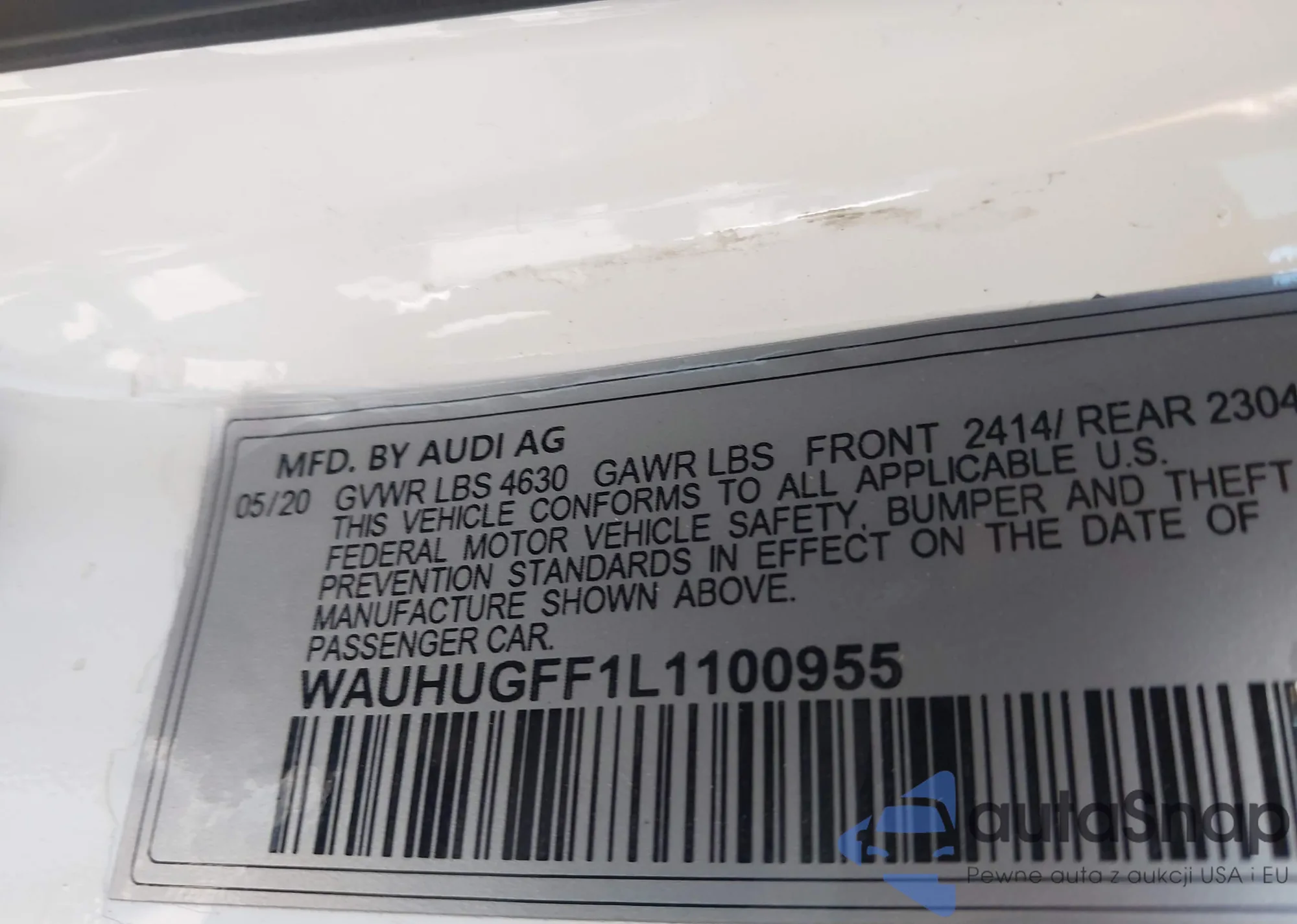 • VIN: WAUAUGFF7LA103845