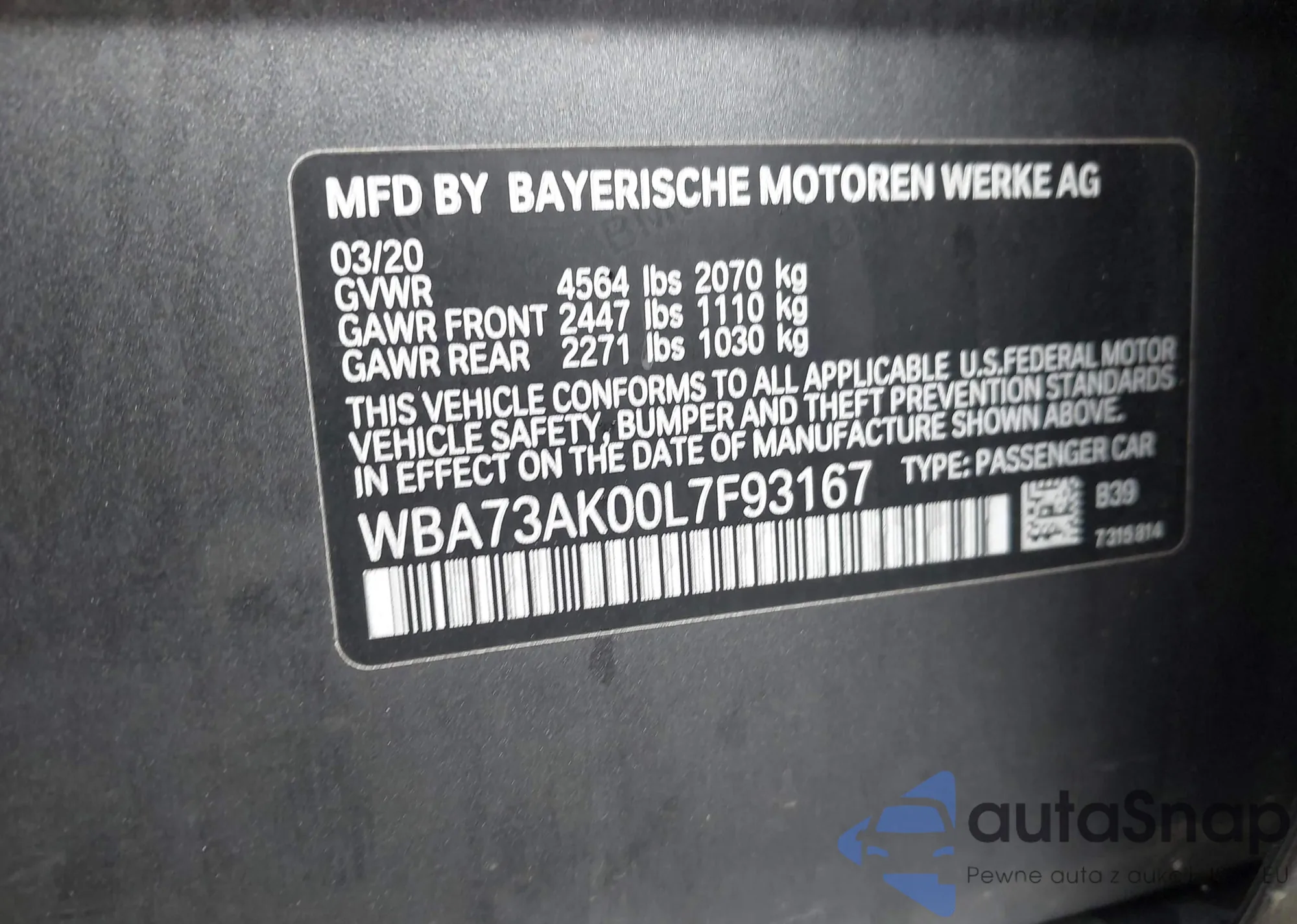 VIN: WBA73AK00L7F93167