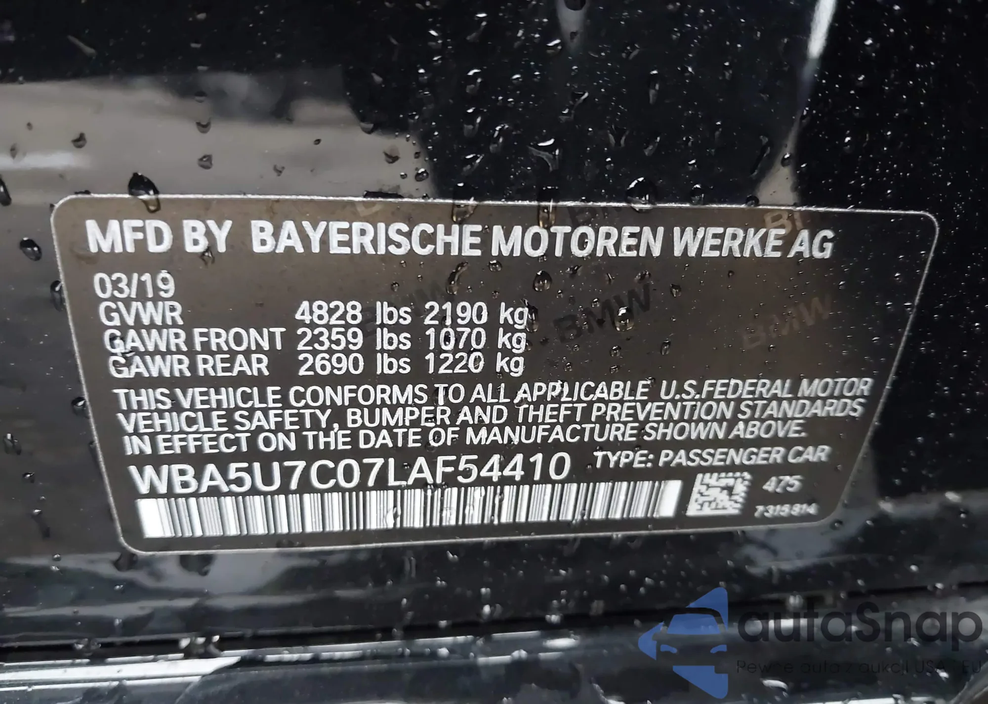 VIN: WBA5U7C07LAF54410