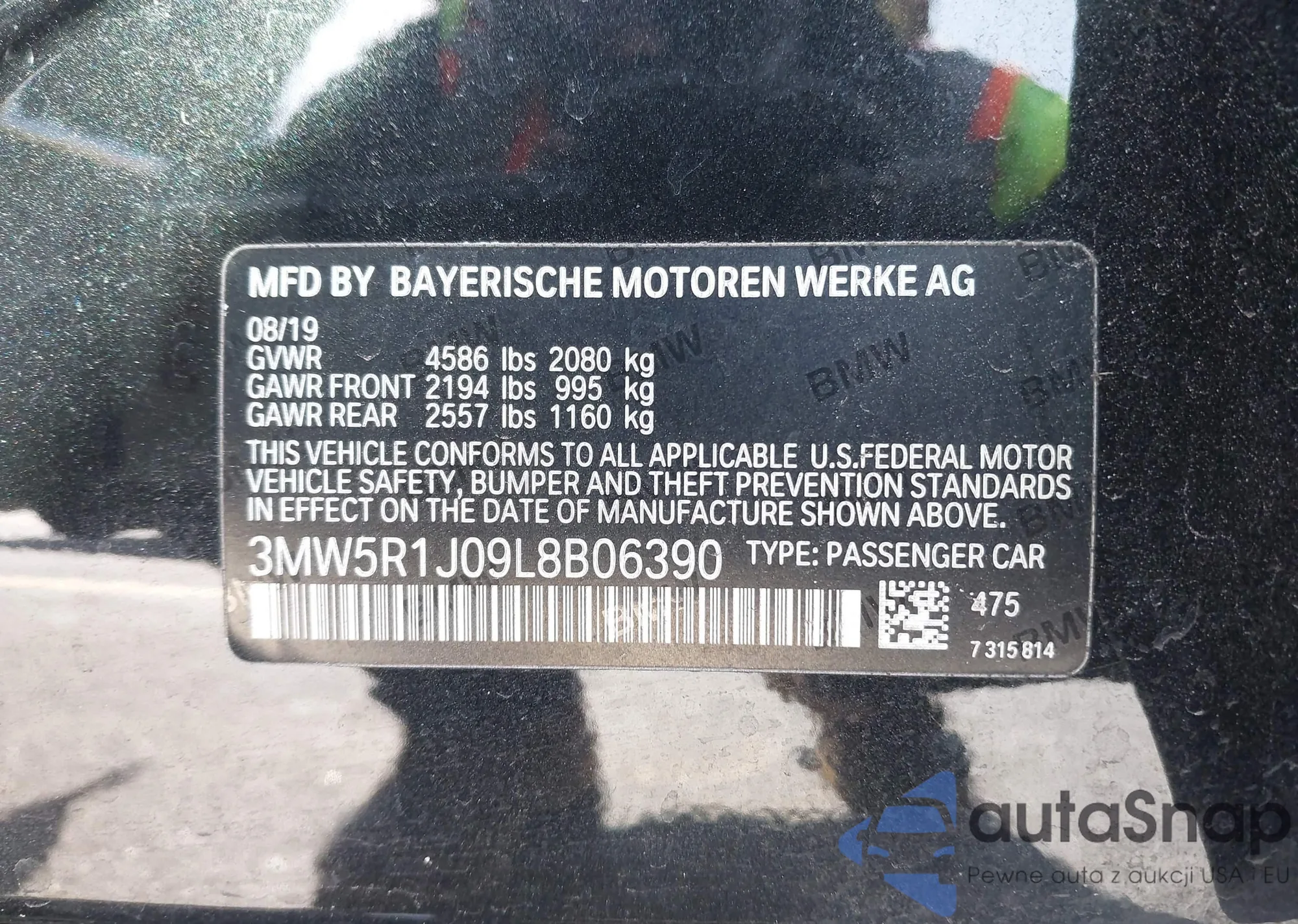 The car BMW 3er 2020 (VIN 3MW5R1J09L8B06390) has not been auctioned before. The documents are clean, and the mileage matches or is below the market average. Sold by an insurance company – we recommend purchase. Delivery to the port will take approx. 6–8 weeks.
