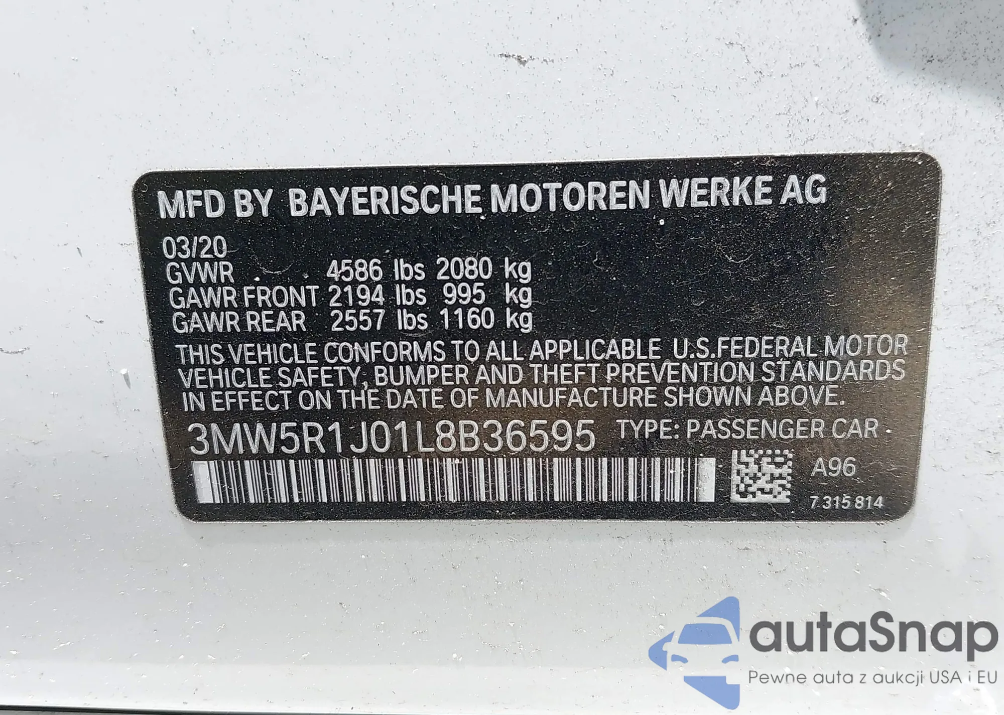 VIN: 3MW5R1J01L8B36595