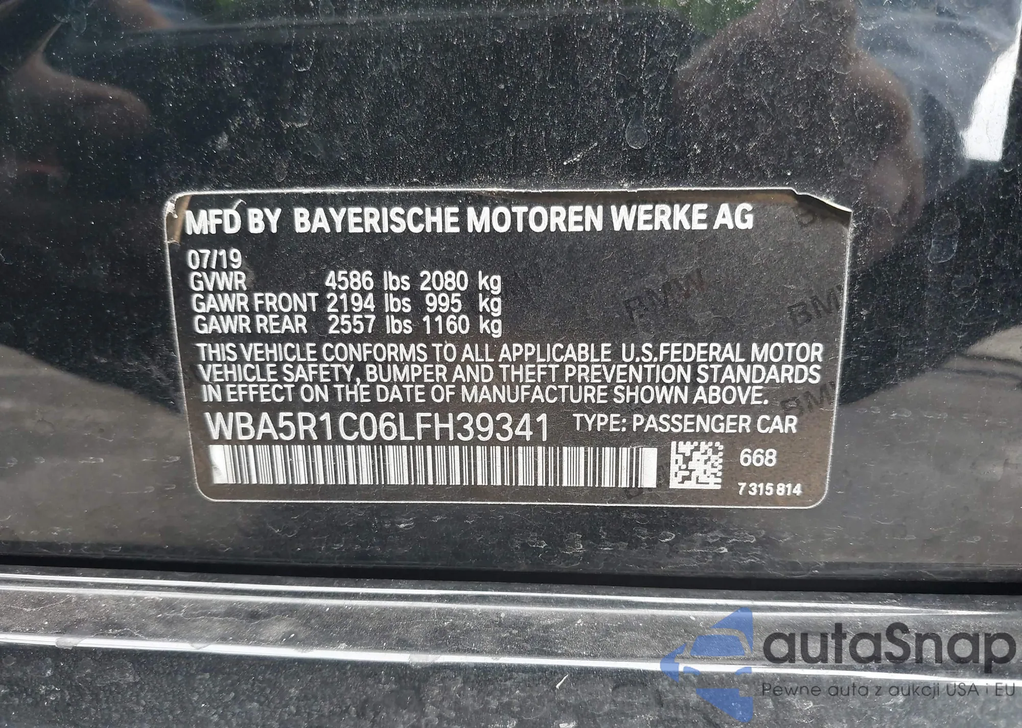 VIN: WBA5R1C06LFH39341