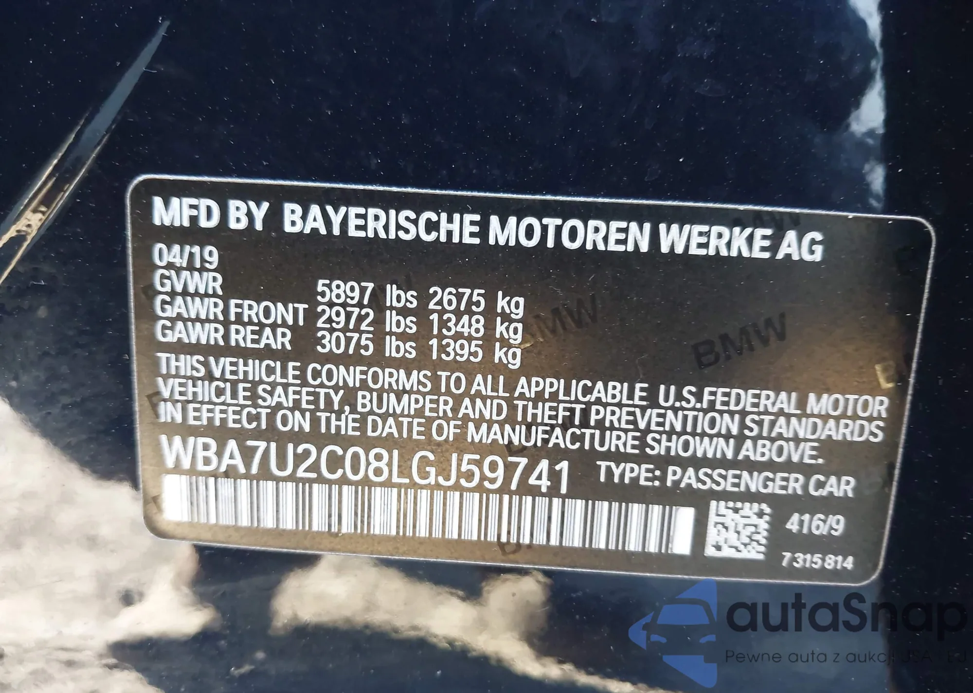 • VIN: WBA7U2C08LGJ59741