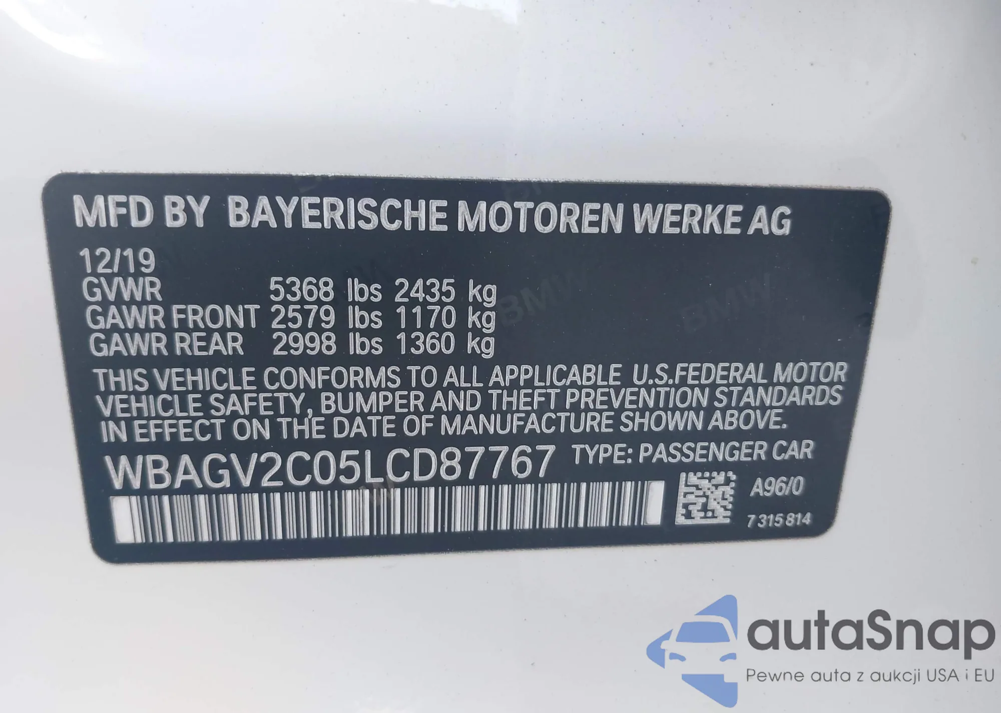 VIN: WBAGV2C05LCD87767