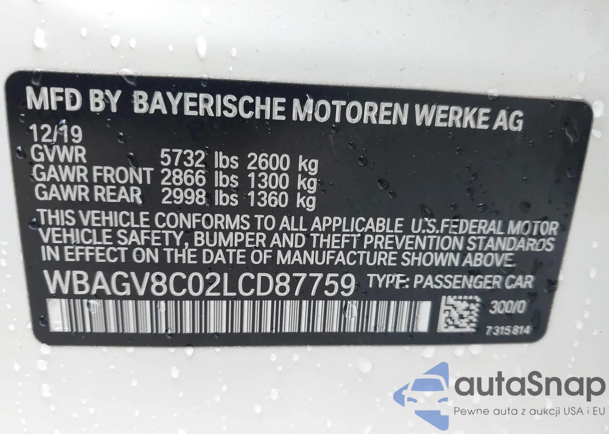 • VIN: WBAGV8C02LCD87759