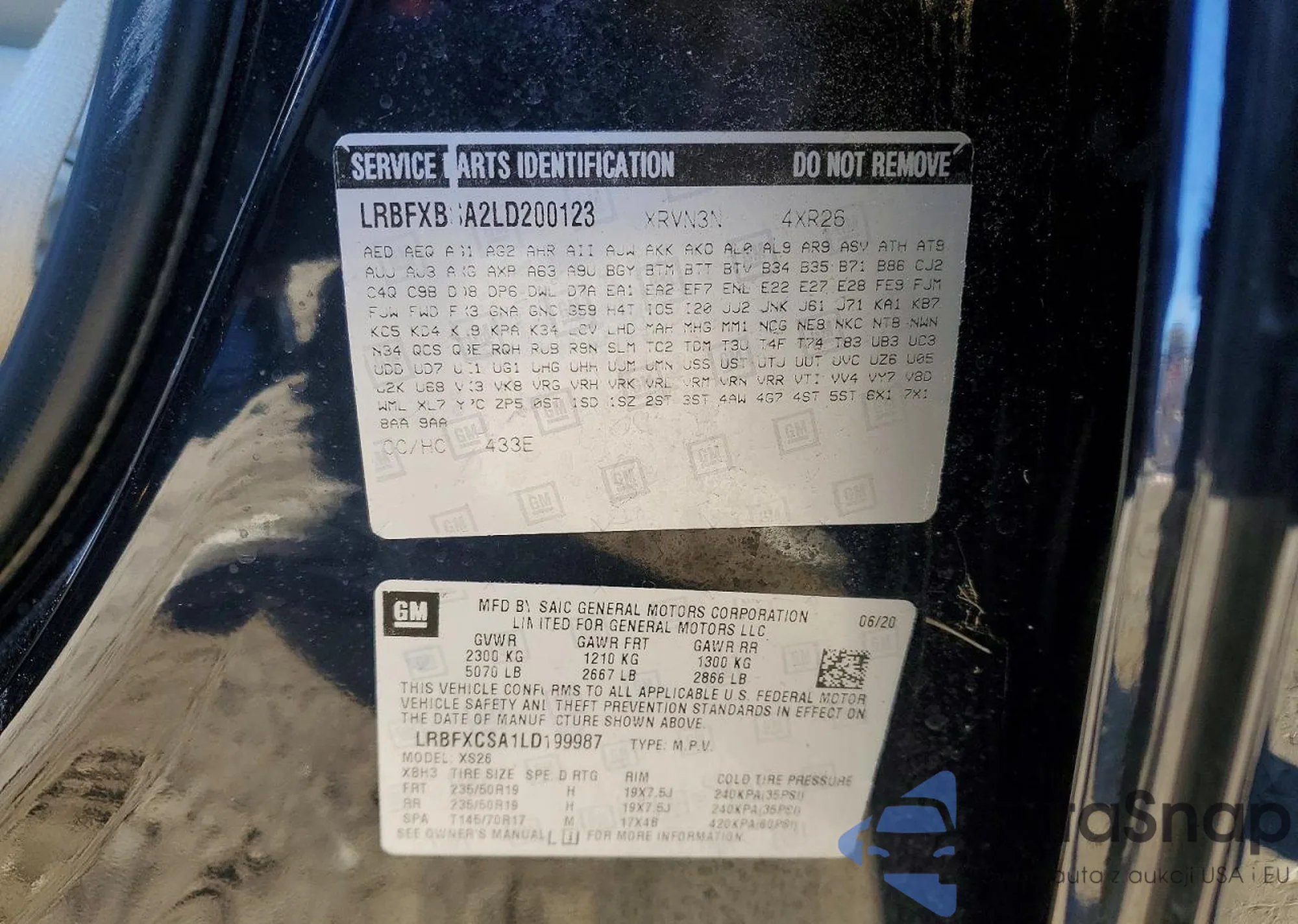 The car Buick Envision 2020 (VIN LRBFXBSA2LD200123) is sold by an unverified seller. We recommend checking the Carfax report and confirming registration possibilities before purchase.
