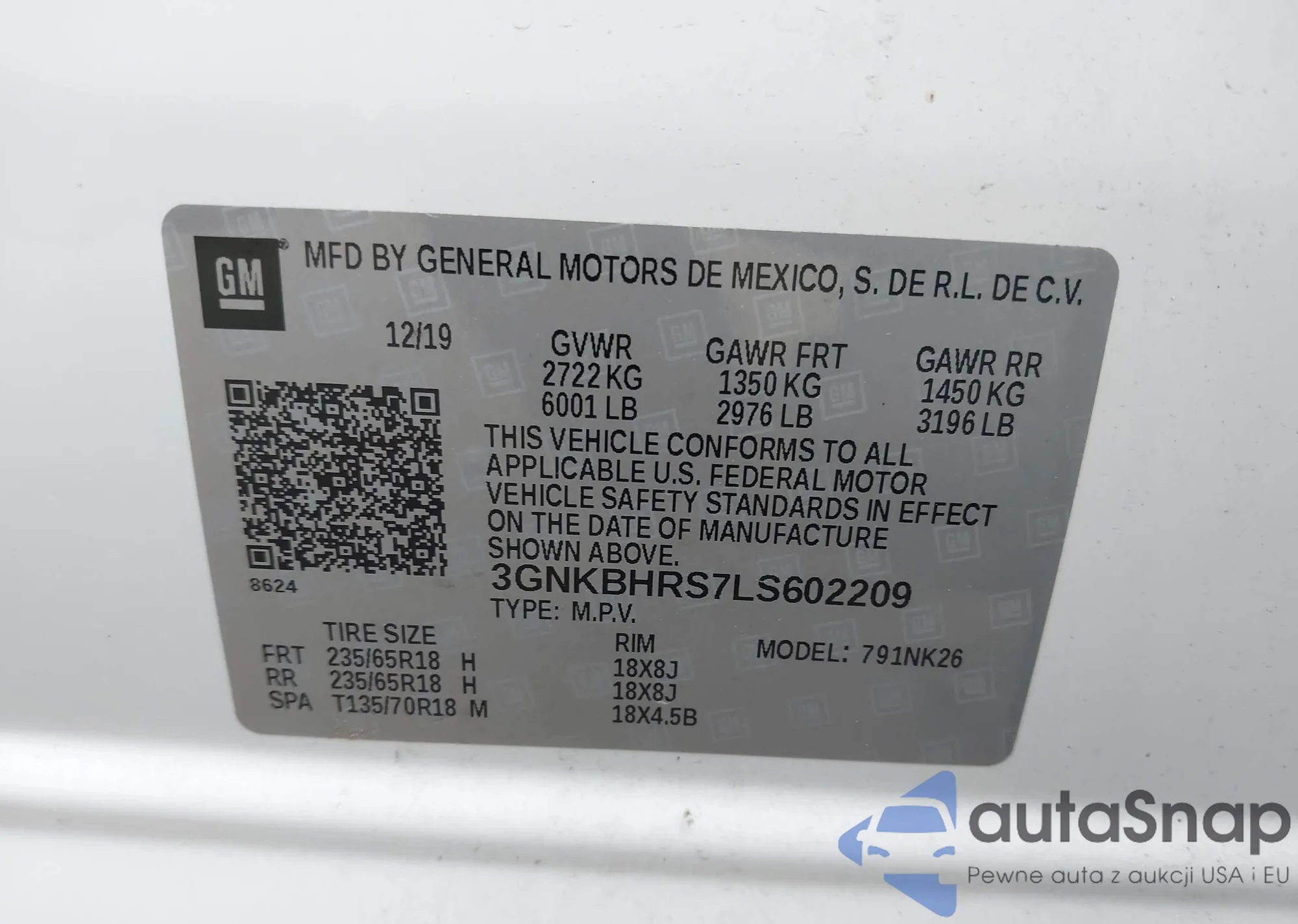 VIN: 3GNKBHRS7LS602209