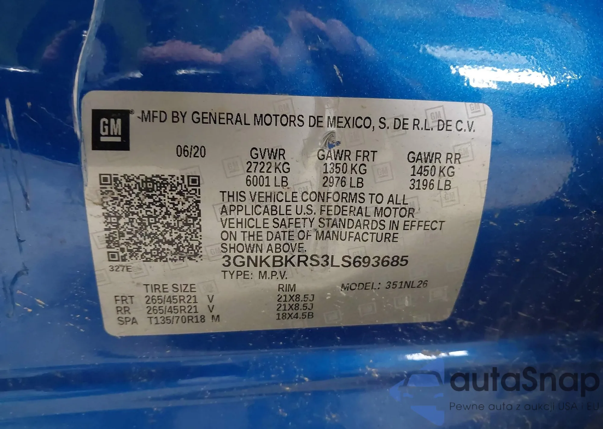 The car Chevrolet Blazer 2020 (VIN 3GNKBKRS3LS693685) has not been auctioned before. The documents are clean, and the mileage matches or is below the market average. Sold by an insurance company – we recommend purchase. Delivery to the port will take approx. 6–8 weeks.