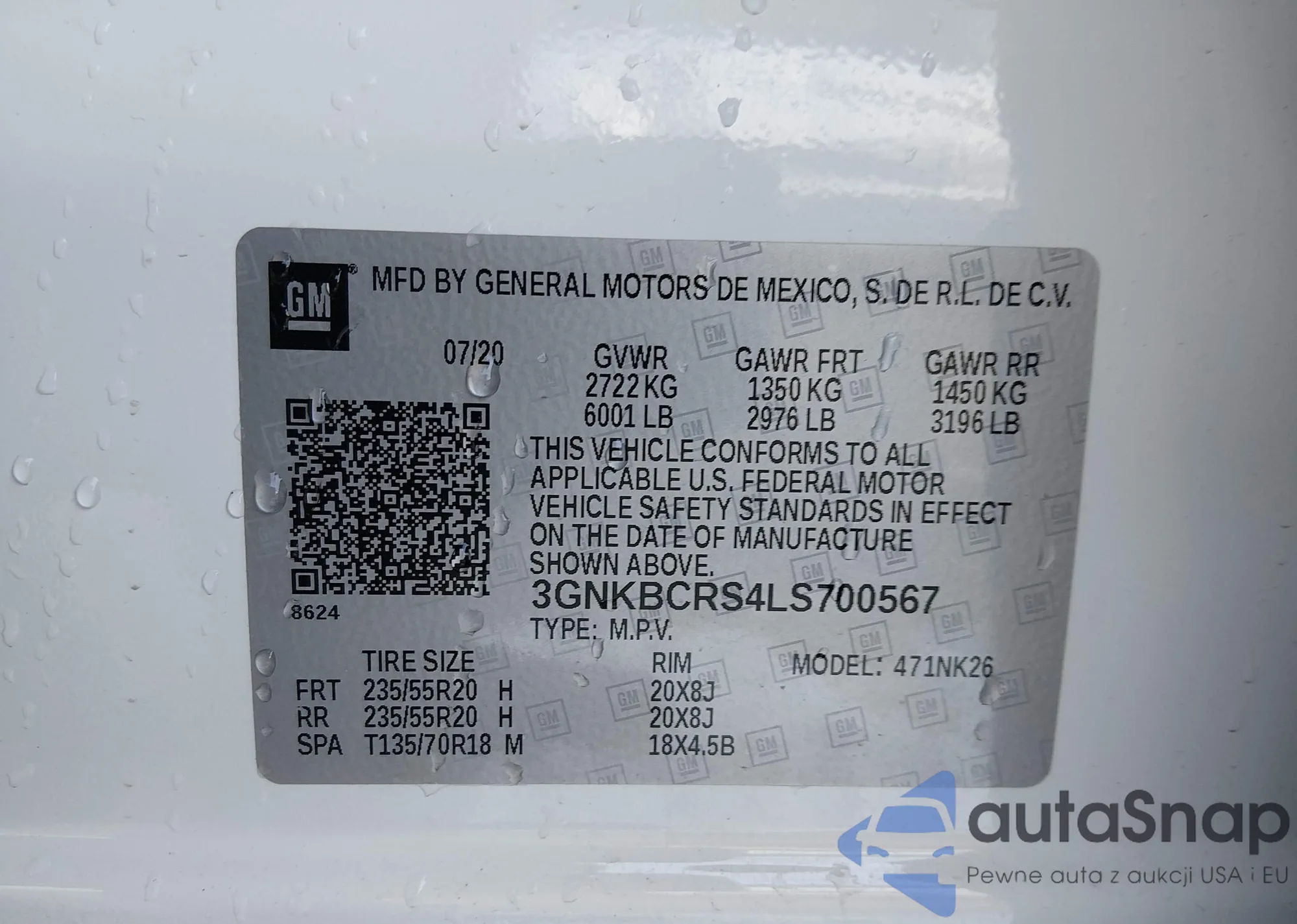 • VIN: 3GNKBCRS4LS700567