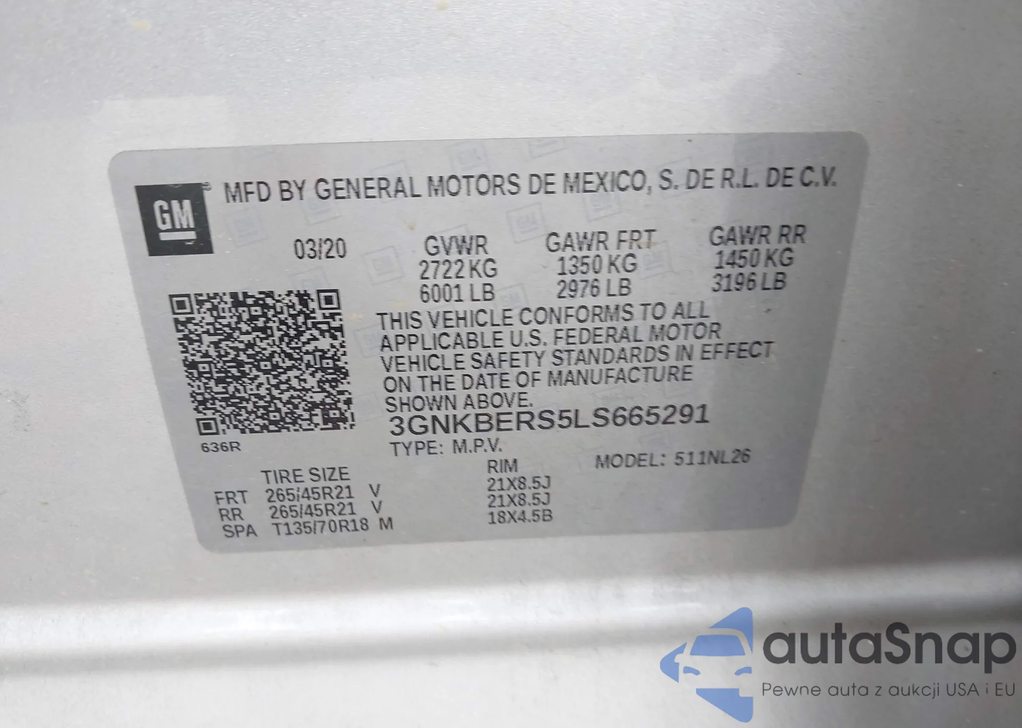 VIN: 3GNKBERS5LS665291